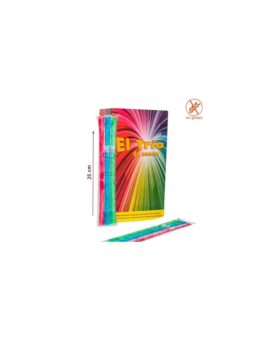 POLINES O POLOS FLASH TRICOLOR 55uds FLEQUI es golosina líquida para congelar que en el mismo polín combina fresa, tropic y lima. Se venden 55uds sin gluten.