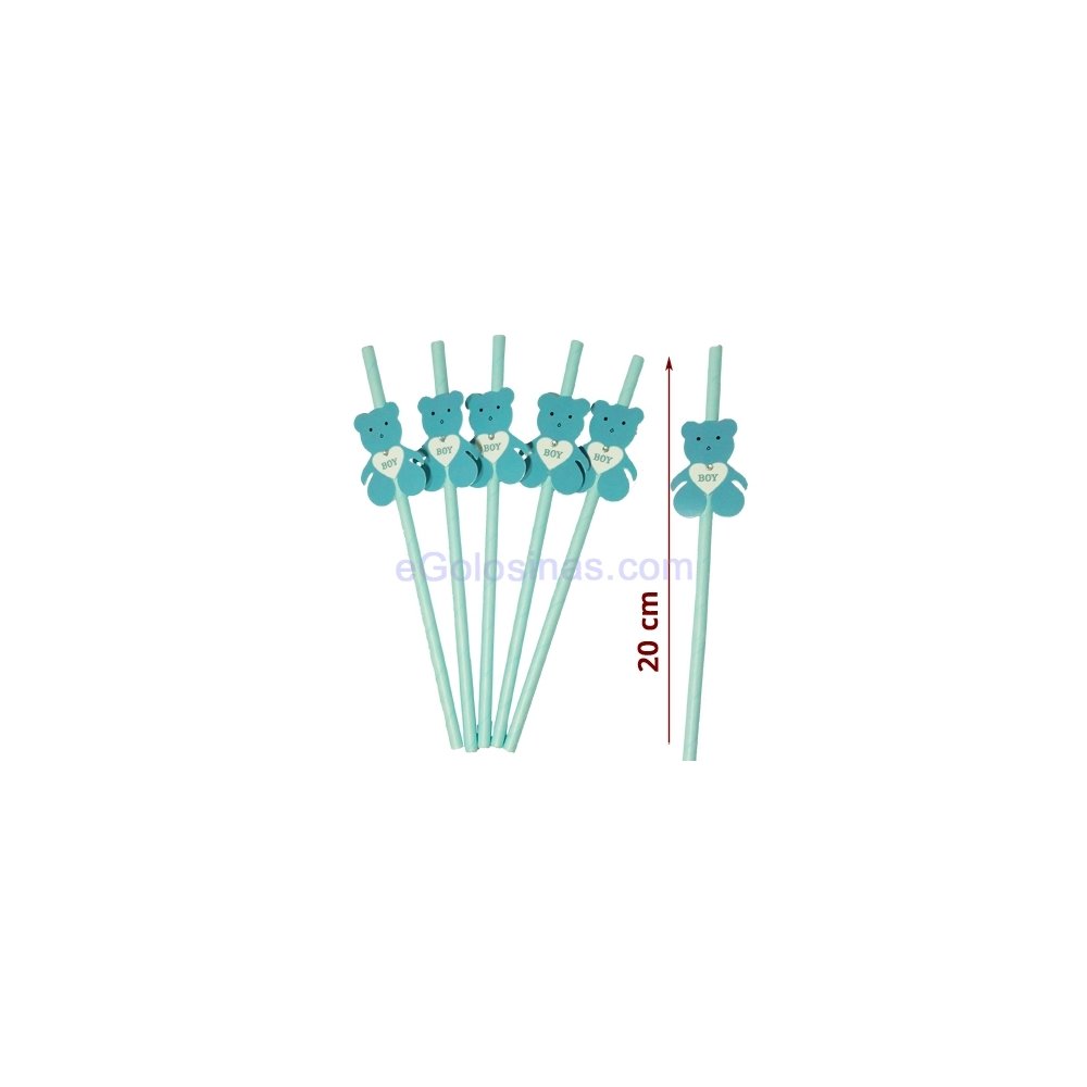 6 Pajitas Decoradas Oso Azules Bebe
