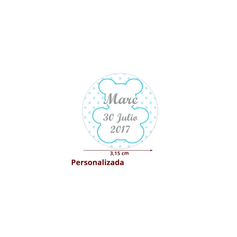 Etiqueta Pegatina Bebé Azul Niño Personalizada 3.15cm