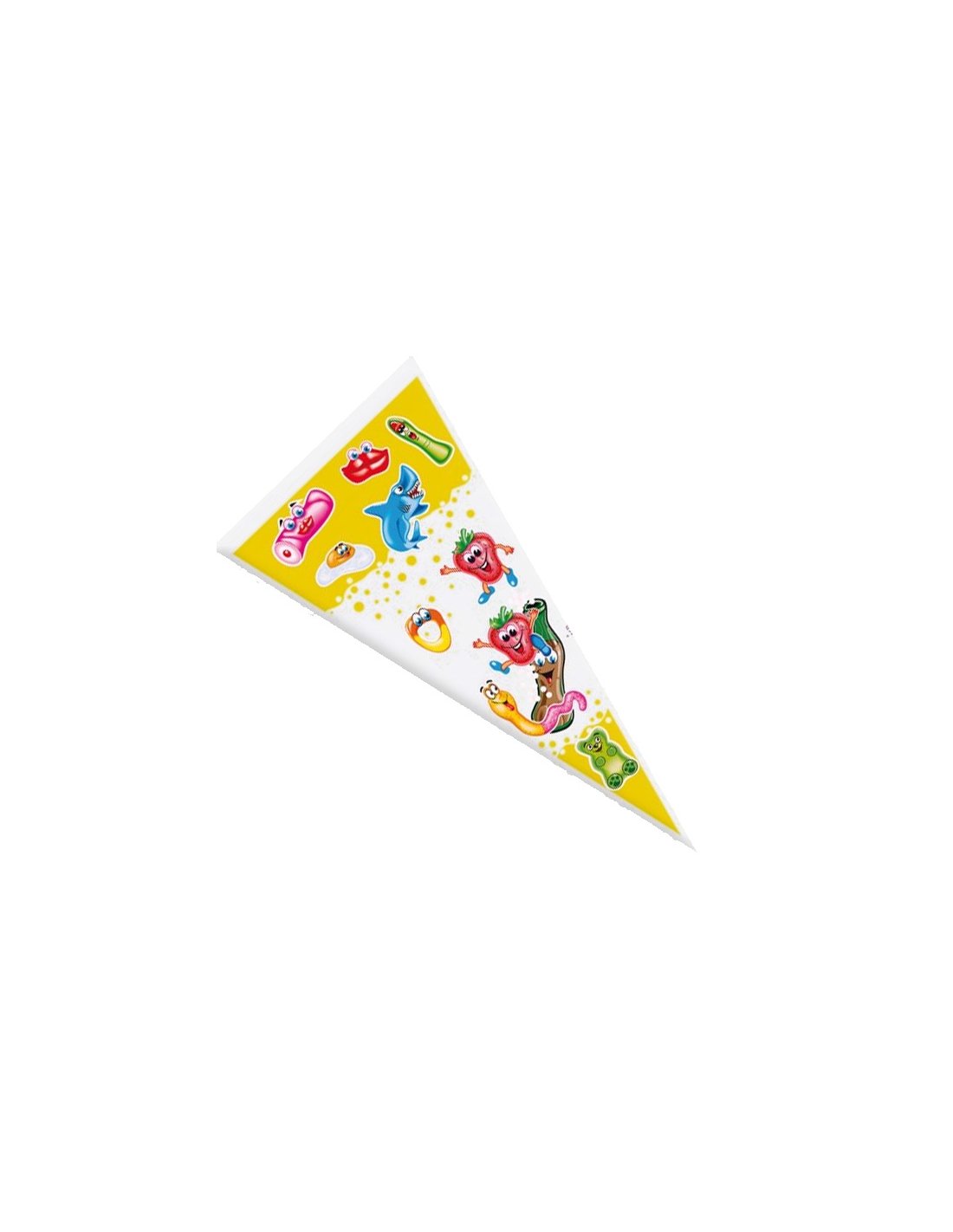 Bolsas Cono decorada Gominolas 100uds vacías para chuches 20x40cm es una bolsa VACÍA con forma de cono de 20 x 40cm. Se venden packs de 100 unidades. Ideales para fiestas infantiles y cumpleaños