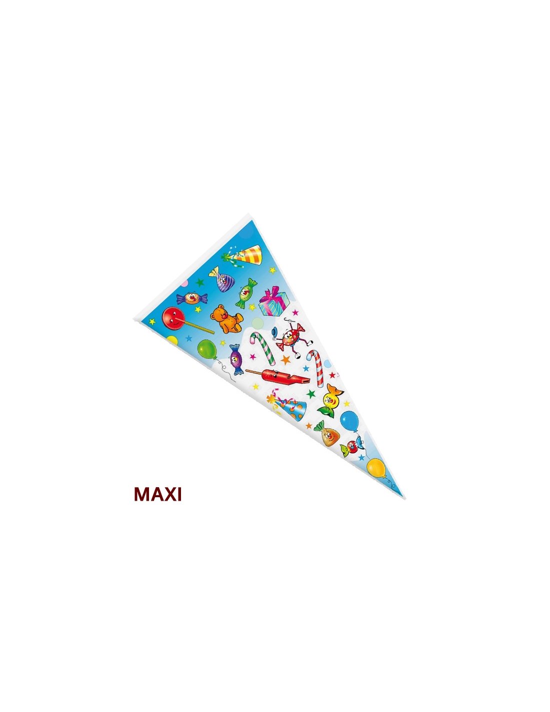 BOLSO CONO GIGANTE CARAMELOS son bolsas vacías con forma de cono de 30x60cm, ideales para fiestas infantiles y cumpleaños. Se venden 100 unidades.