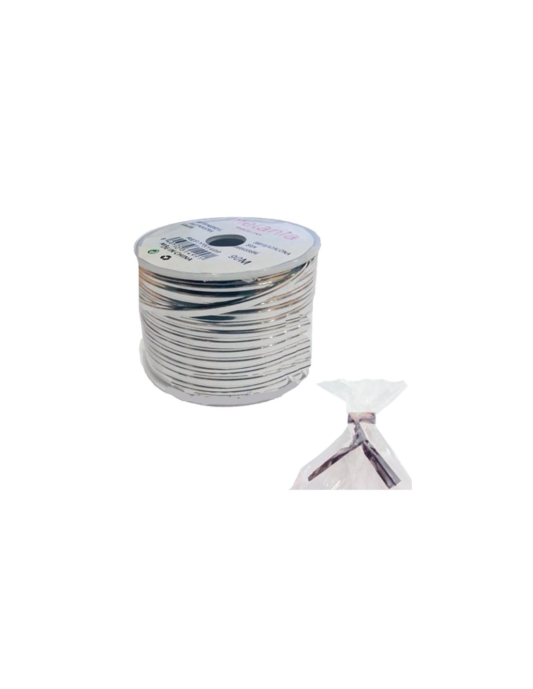 CINTA CIERRE ALAMBRE para BOLSAS PLATA son cintas que se cortan con unas tijeras simples. Llevan un alambre en el interior para poder cerrar las bolsas herméticamente de forma sencilla y decorada.