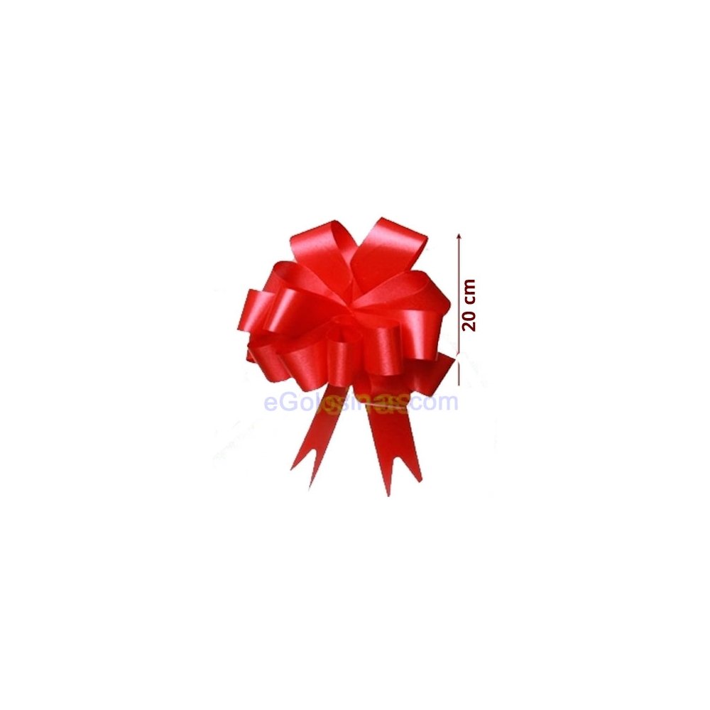 LAZO MAGICO ROJO 4,5cmx150cm 20uds es una cinta de 45mm de color ROJO. Al estirar de una punta se hace un lazo bonito y fácil. El lazo mide unos 20cm y le quedan dos cintas más finas de 150cm de largo. Se venden 20 lazos. Son ideales para los regalos de Navidad, para decorar mesas, decorar botellas para Bodas o para otros eventos.
