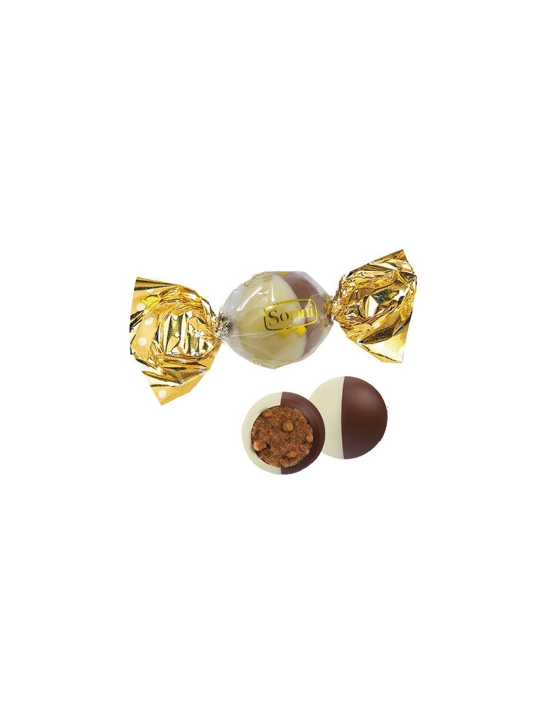 BOMBONES DOUBLE SORINETTE son bombones de dos tipos de chocolate en uno. Se venden envueltos individual en bolsa de 1Kg.