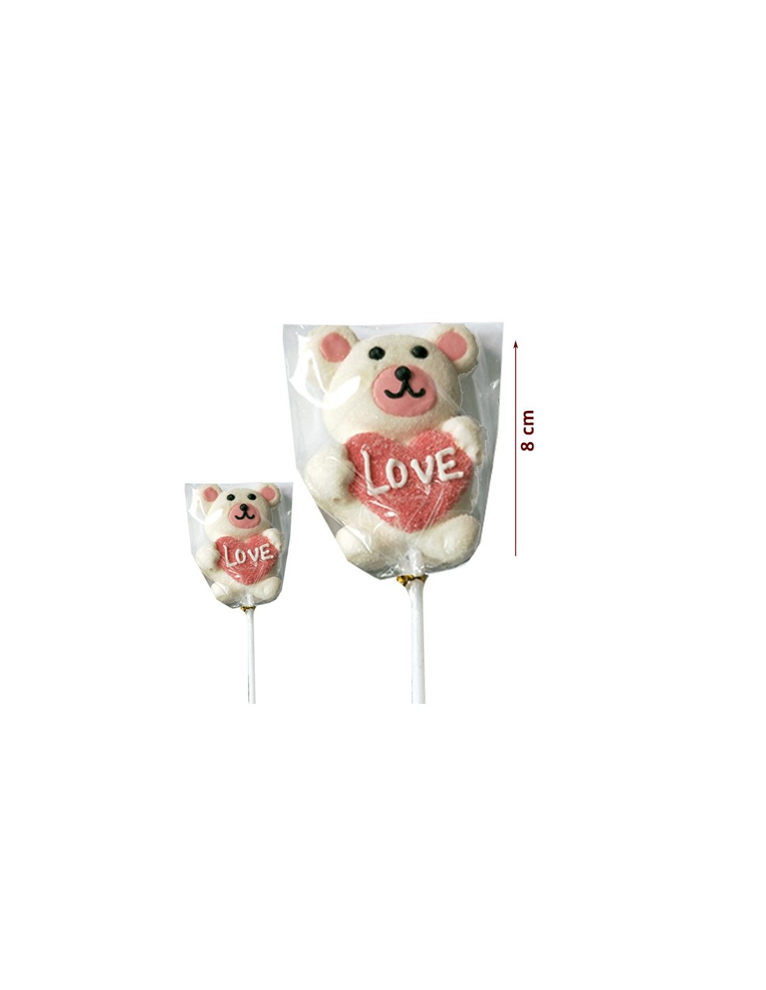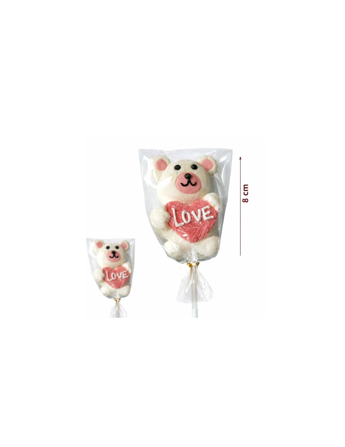 PIRULETAS NUBE OSO ENAMORADO 16uds son piruletas de Nube de 8cm de alto con forma de oso. Van envueltas individualmente. Son ideales para regalar en San VAlentín o en Sant Jordi.