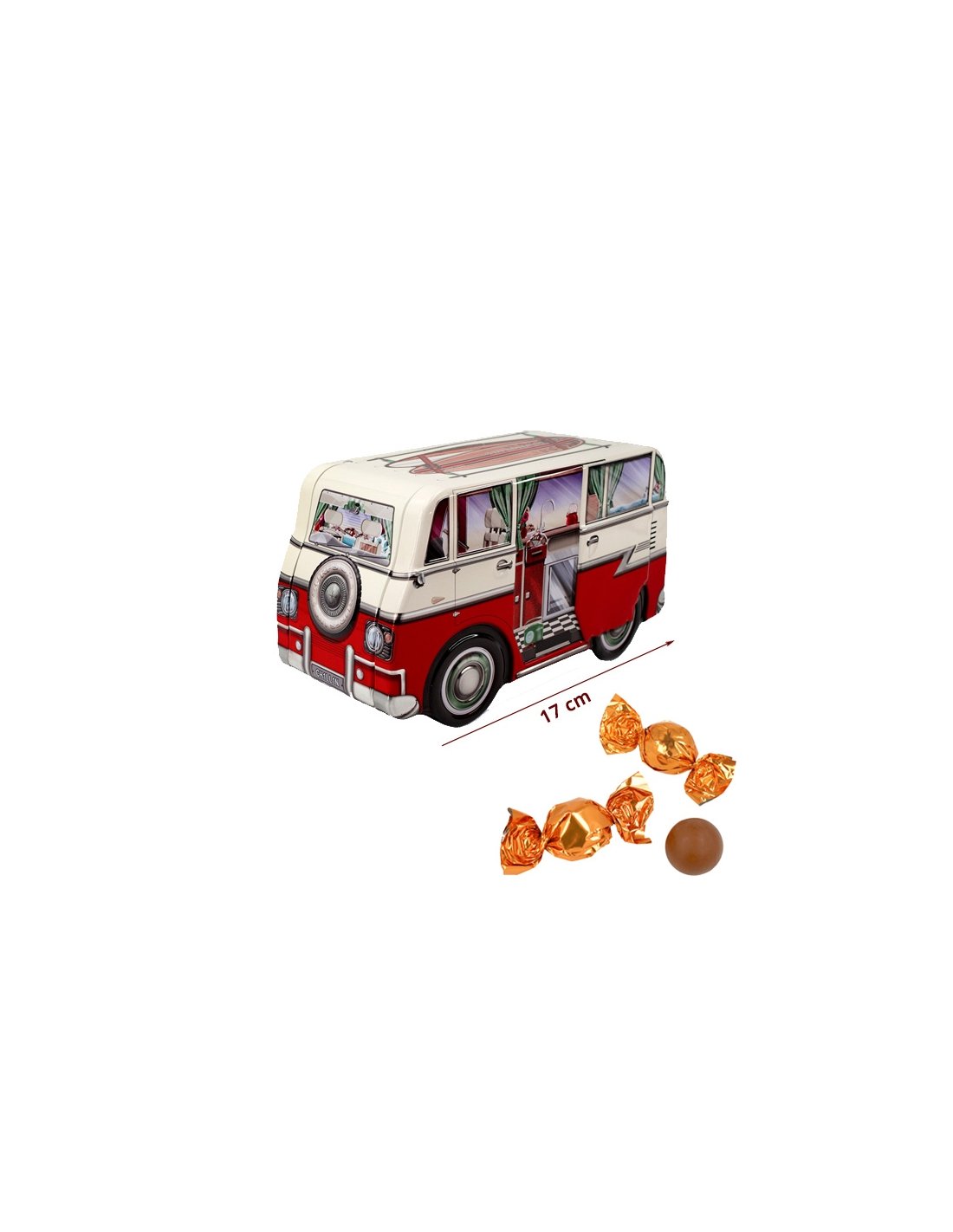 LATA BOMBONES MINI CAMPER 150gr es una divertida caja de Bombones con forma de VAn Mini Camper. Contiene 150 gr de Maxi Bombones.