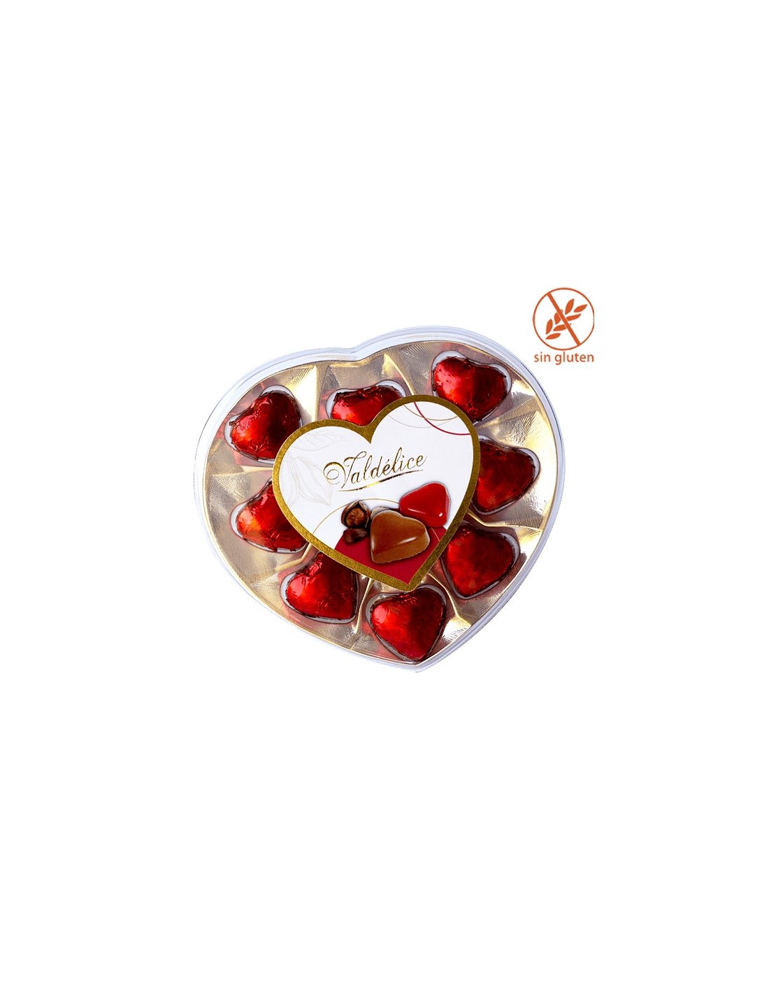 CAJA BOMBONES CORAZON ROJO 91gr VALDELICE son 9 bombones de chocolate con avellanas perfectos para regalar en San Valentín