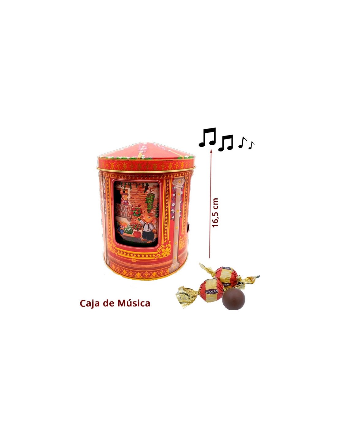 CAJA BOMBONES MUSICAL CARRUSEL ROMEO Y JULIETA 150gr es una lata de maxi bombones muy original para regalar en Navidad.
