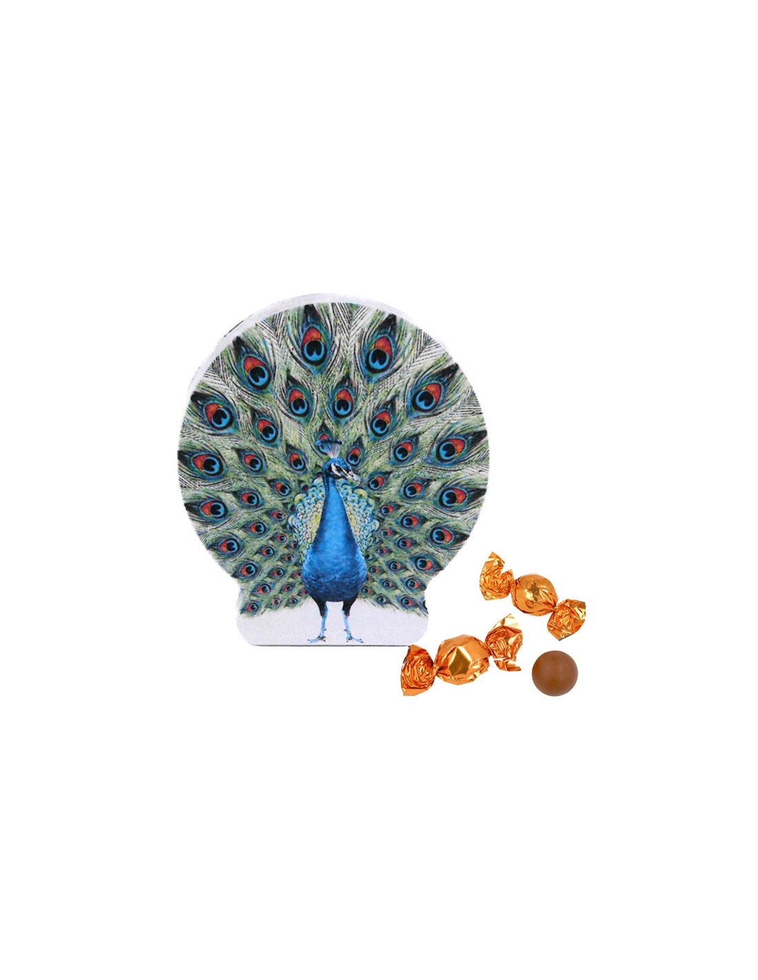 Caja Bombones Lata Pavo Real 150Gr Chocoday es una divertida caja de Bombones con forma de Pavo Real. Contiene 150 gr de Maxi Bombones.