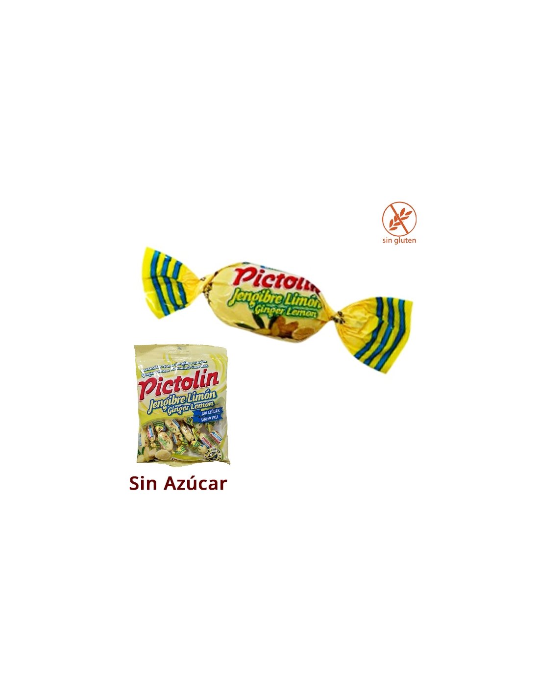 Caramelos Pictolín Jengibre Limón sin azúcar 12 Bolsitas 65Gr es un caramelo jengibre con limón. Se venden 12 bolsitas de 65gr cada una. SIN AZUCAR