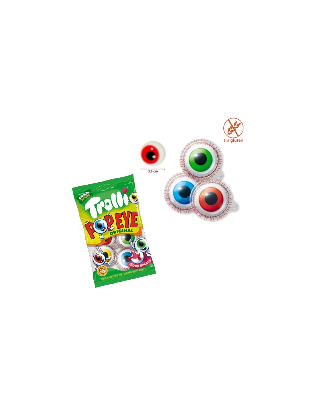 Chuches Ojos rellenos 21 Bolsitas de 4 ojos de goma Trolli Golosinas son golosinas rellenas con toque ácido líquido en el interior dentro de una cápsula encontrarás un ojo que no te dejará indiferente