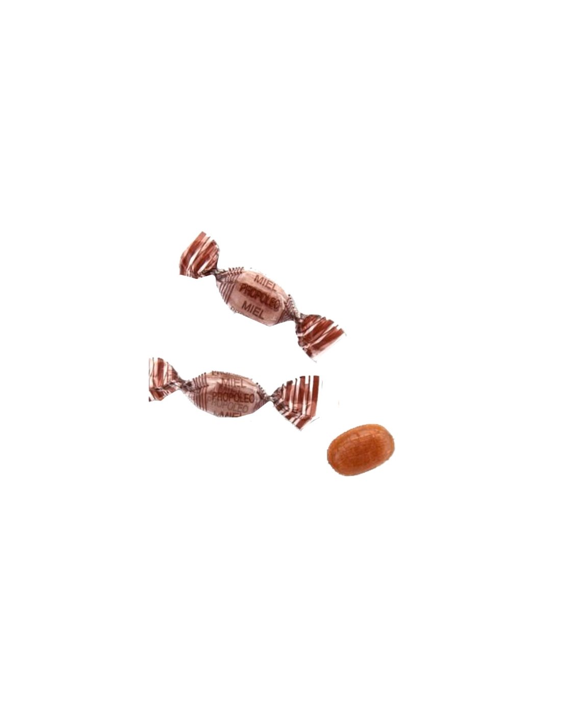 CARAMELO MIEL PROPOLEO son caramelos con Miel y Propoleo ideal para la garganta. Se venden envueltos individualmente en una bolsa 1Kg.