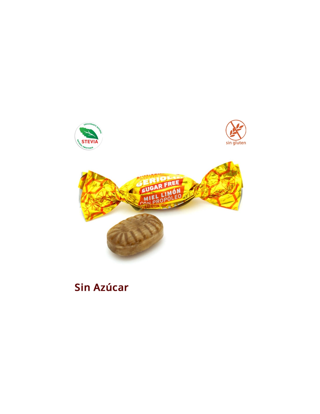 CARAMELO GERIOVIT PROPOLEO, MIEL Y LIMON 1kg Sin Azucar con STEVIA son caramelos duros sin azúcar de miel y limon con propoleo. Se vende en bolsas de 1Kg
