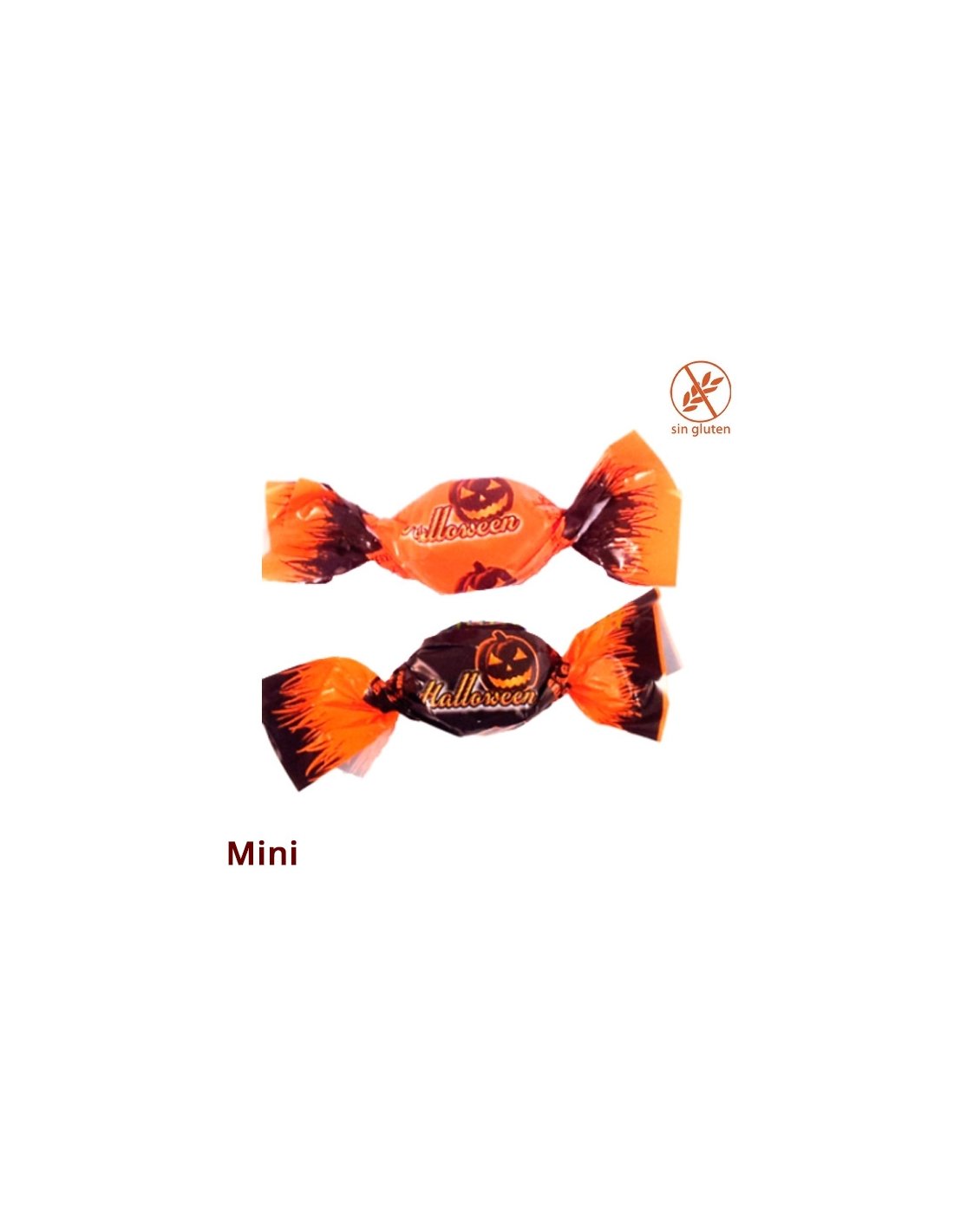 Son caramelos de tamaño pequeños perfectos para regalar en Halloween por una tienda o asociación porque van envueltos, son económicos y tienen la imagen de Halloween. Es un surtido de colores entre naranja y negro con el icono de la calabaza. Se venden en una bolsa de 500gr que llevan aproximadamente unos 215 caramelos. Este caramelo de Halloween no contiene gluten y su fabricante es Intervan.