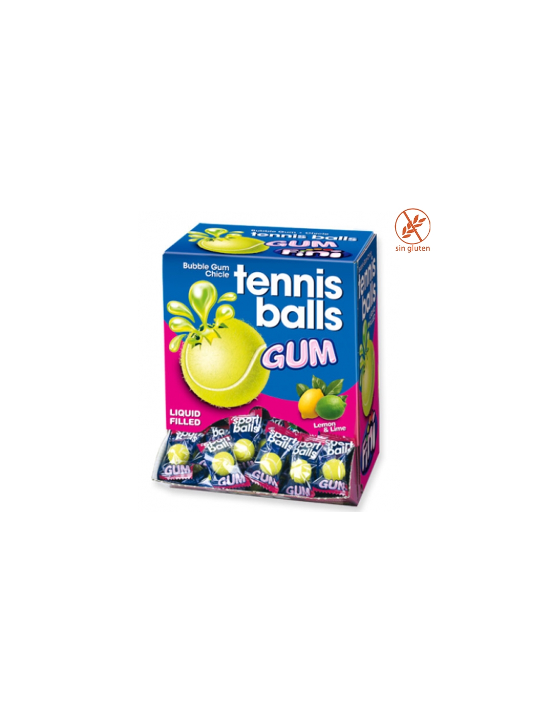 Chicles rellenos con forma Pelotas de Tenis 200uds Fini Golosinas Los chicles SPORT BALLS TENIS de FINI son pelotitas de tenis de chicle con sabor a LIMON rellenos de caramelo y LIMA. Una explosión de acidez en nuestra boca. Se vende en caja de 200 unidades envueltas individualmente, garantizando su conservación en el tiempo. Sin Gluten