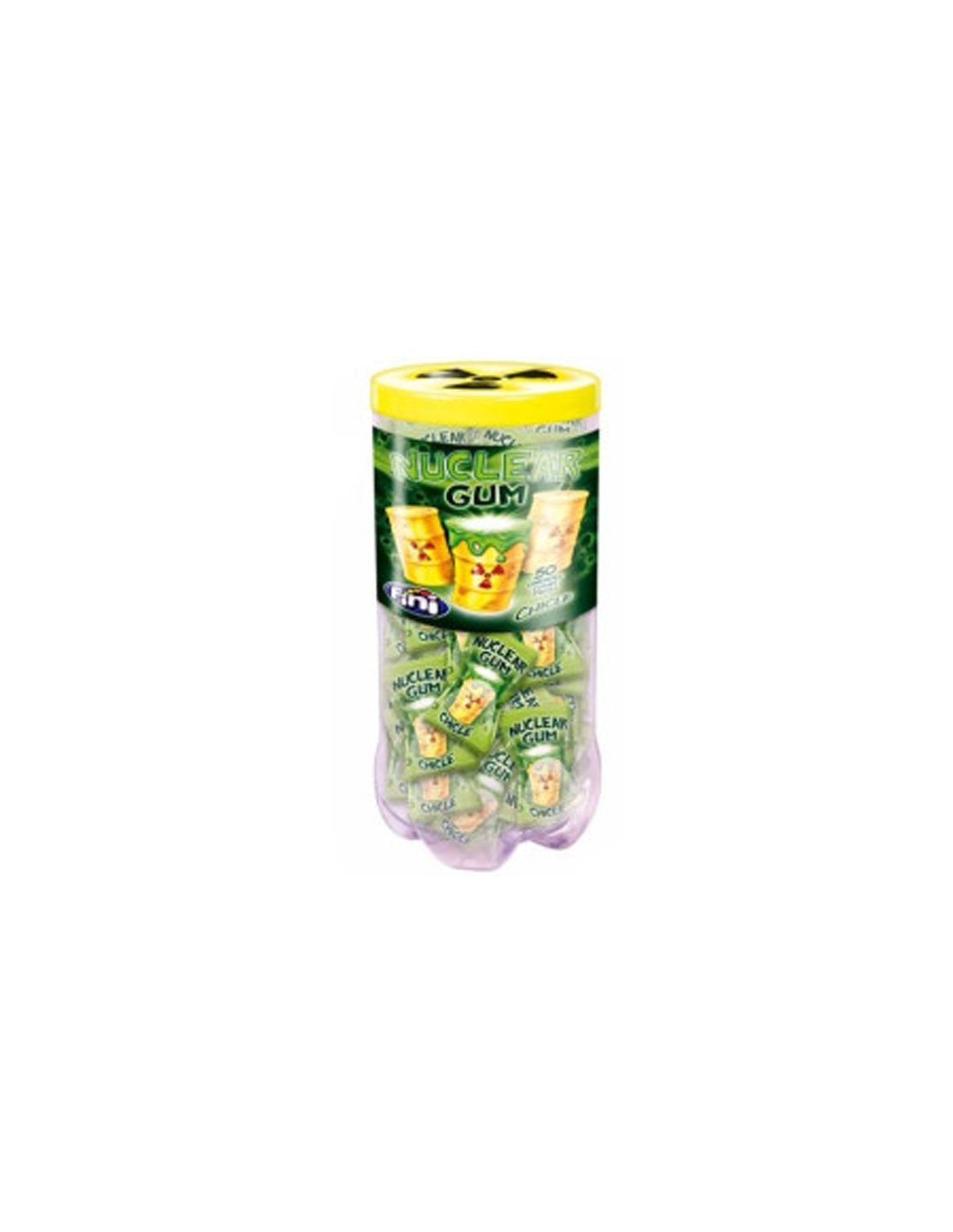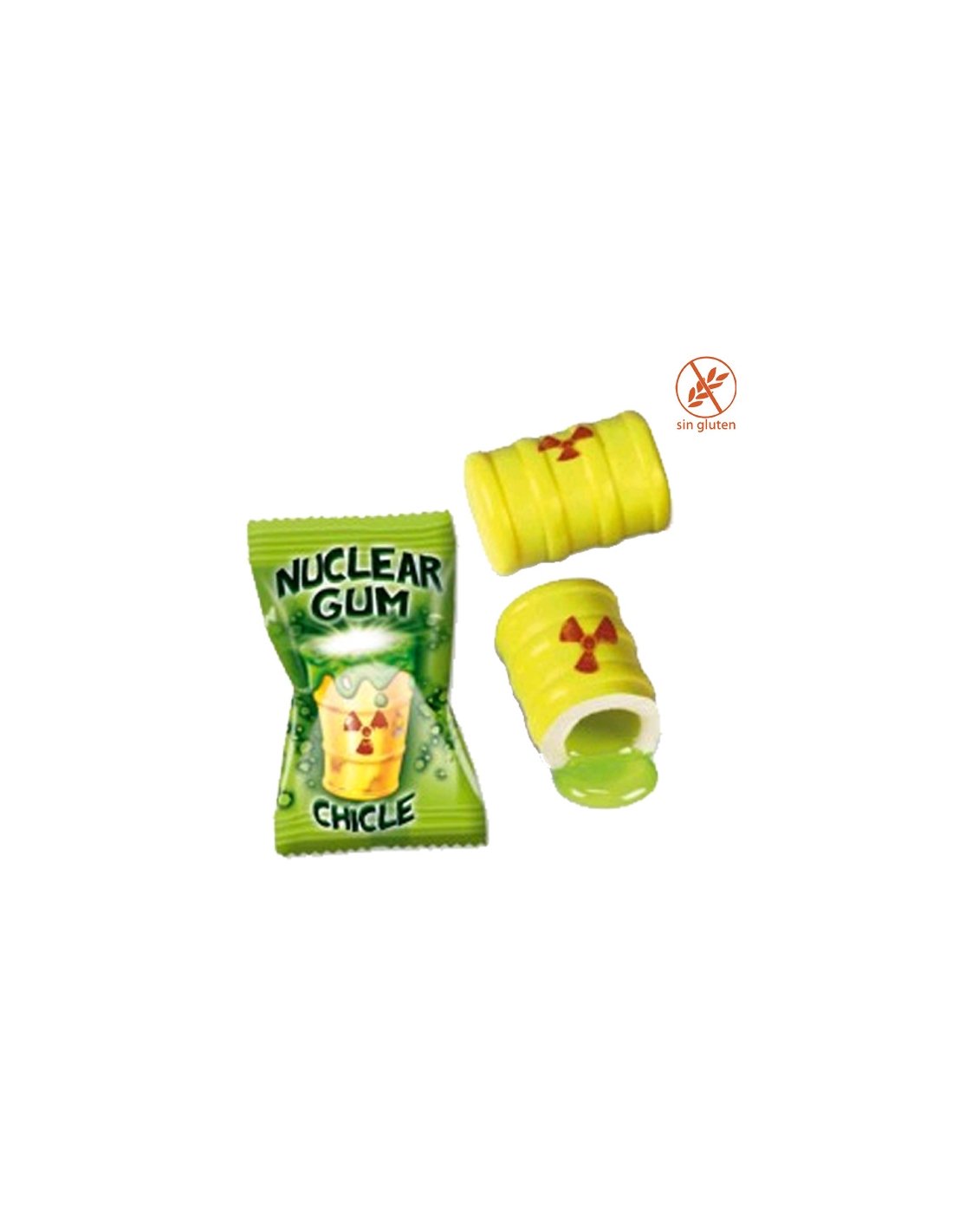 NUCLEAR CHICLE de FINI es un chicle con líquido en el interior. Se venden individualmente en cajas de 50 unidades. Sin Gluten