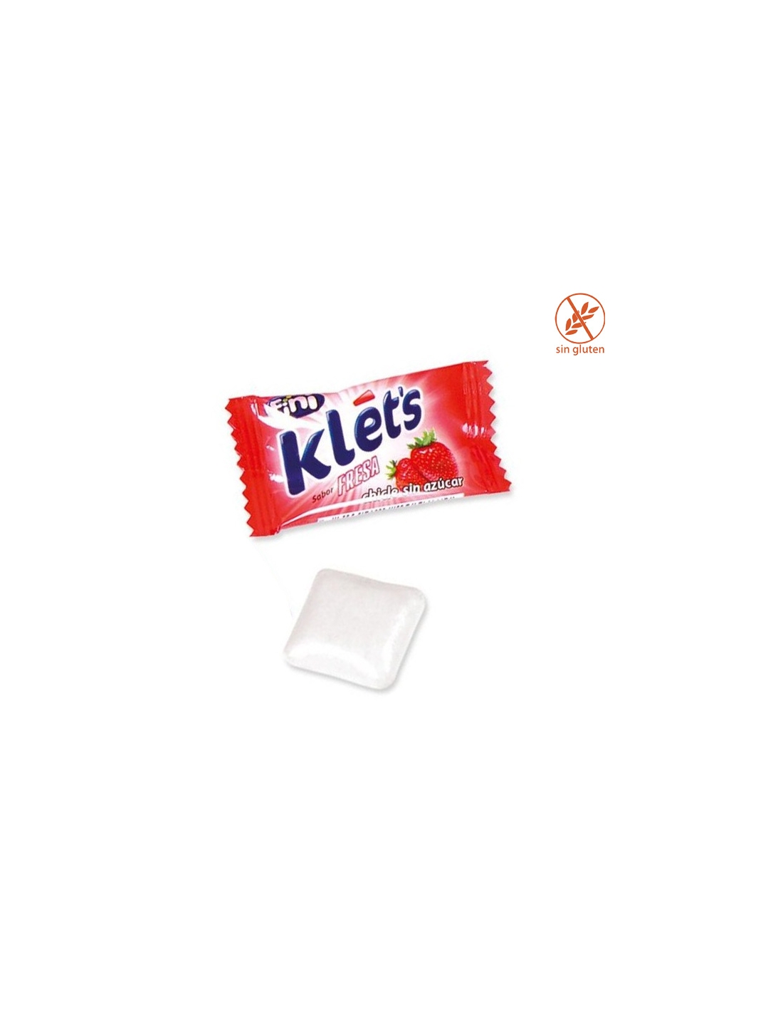 KLET'S FRESA de FINI es un chicle gragea con sabor a menta envuelto indivualmente. Se venden 200 unidades. Sin Gluten