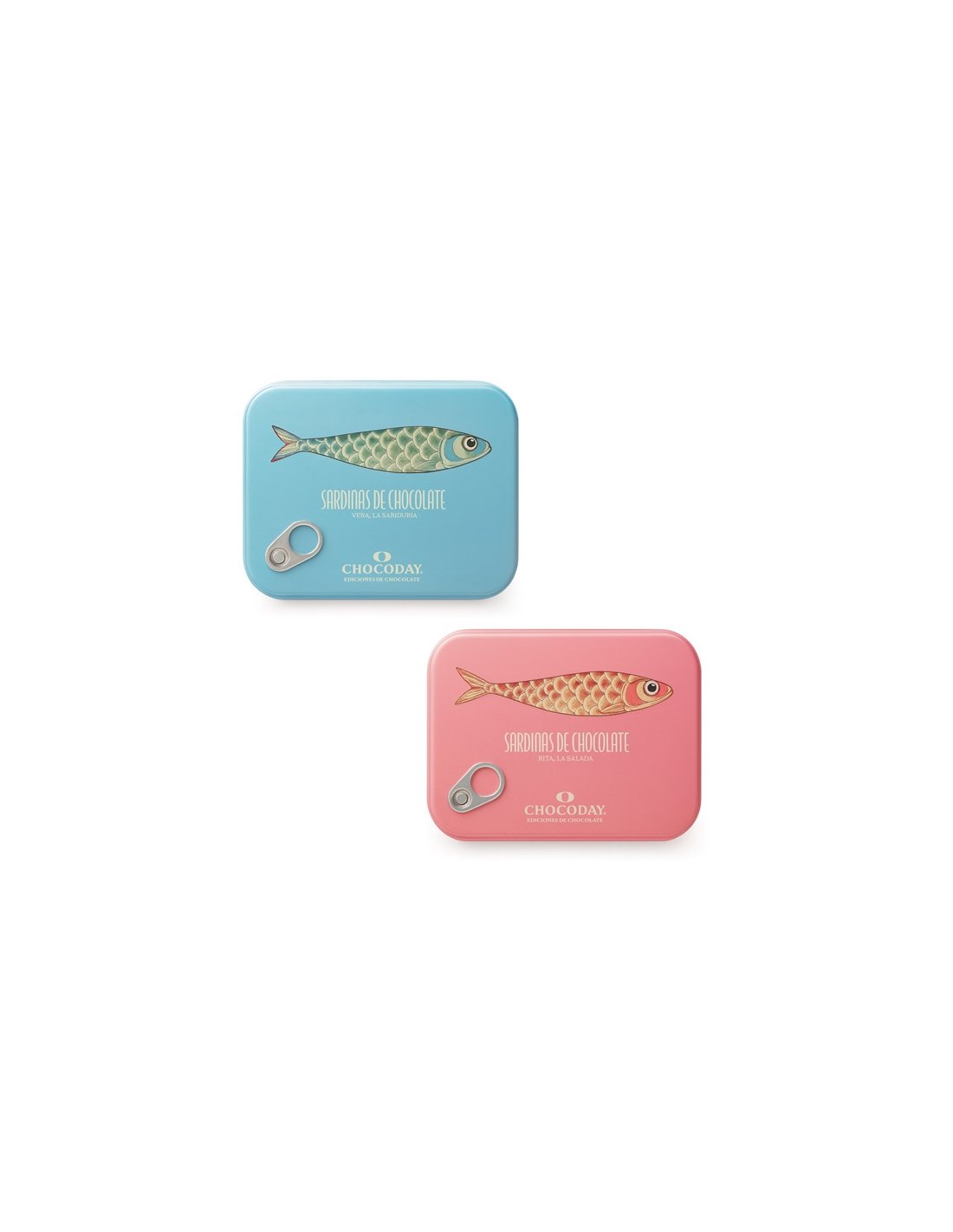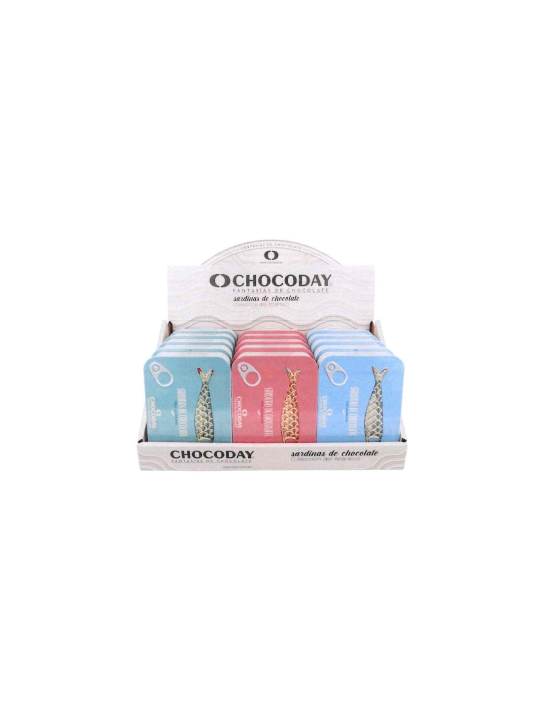 Lata de sardinas de Chocolate 15uds Chocoday son 3 sardinas de chocolate en una caja de lata con forma de lata de sardinas. Se venden 15 latas