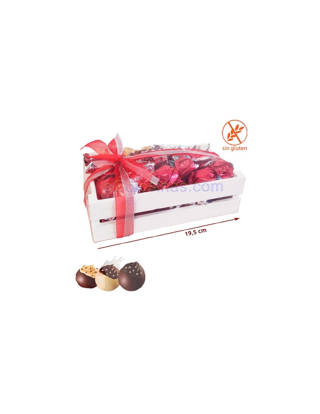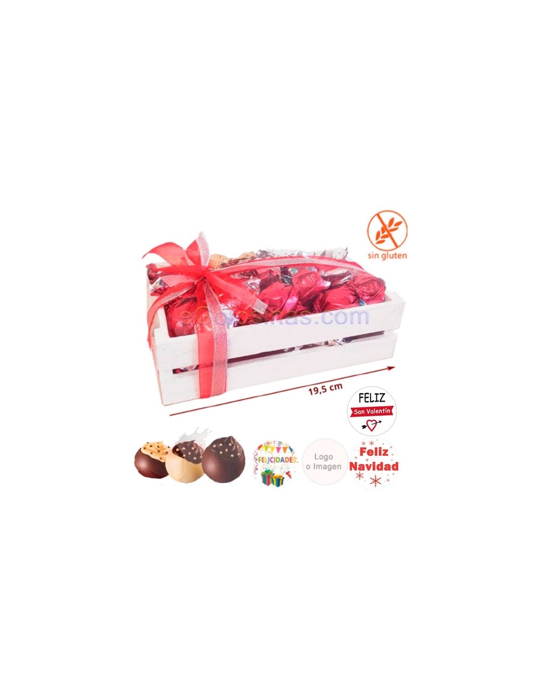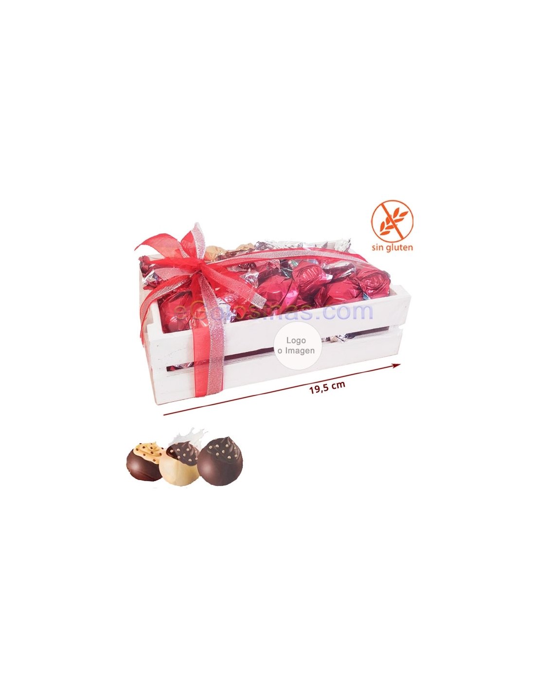 BANDEJA MADERA 300gr BOMBONES personalizable es una bandeja llena de Bombones rellenos de crema o cacao crujientes perfectos para regalar en un evento o a la persona apreciada.