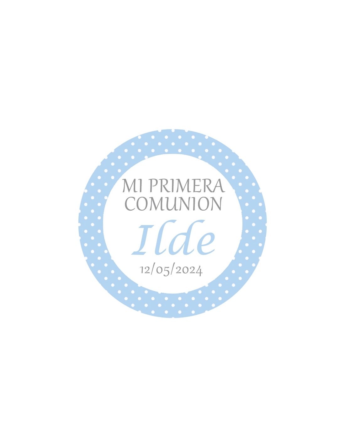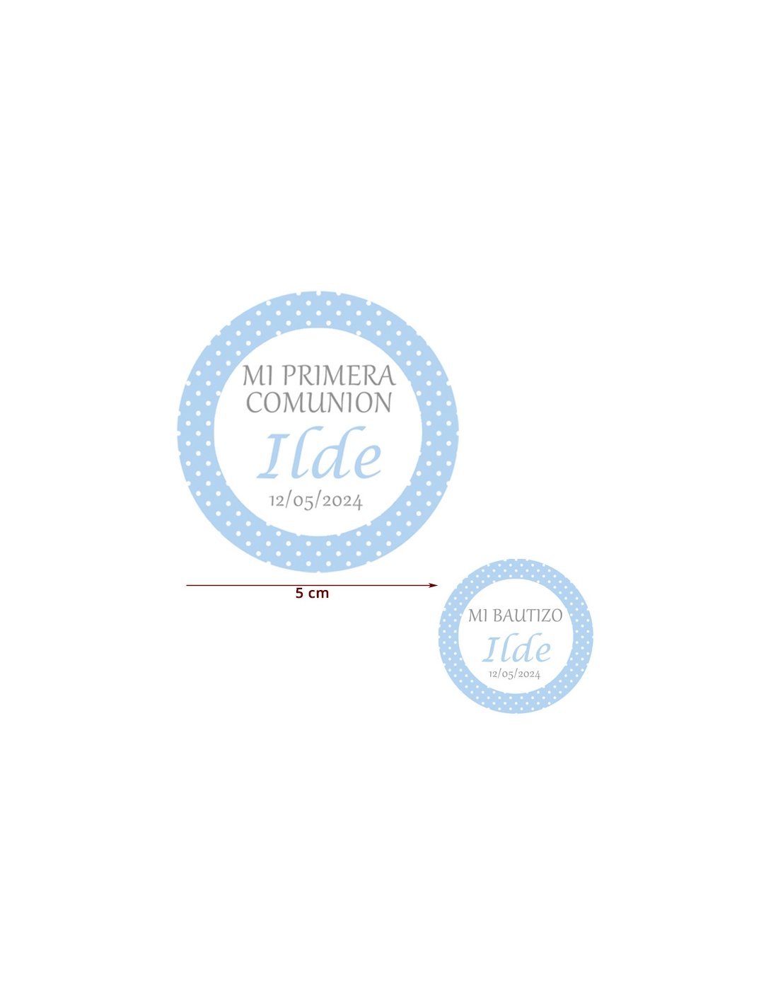 Etiqueta 5cm Azul Topos Comunión Personalizada