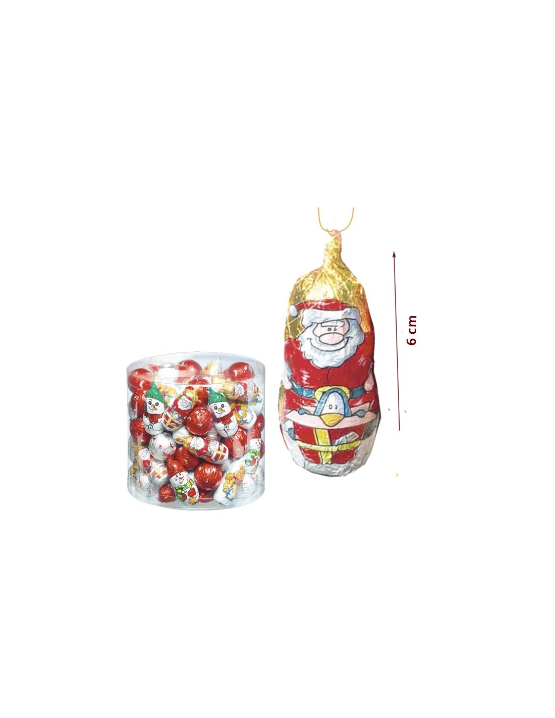 son figuras de chocolate envueltas para Papa Noel y Muñeco de Nieve. Llevan una cuerda pequeña para colgar del árbol de Navidad.