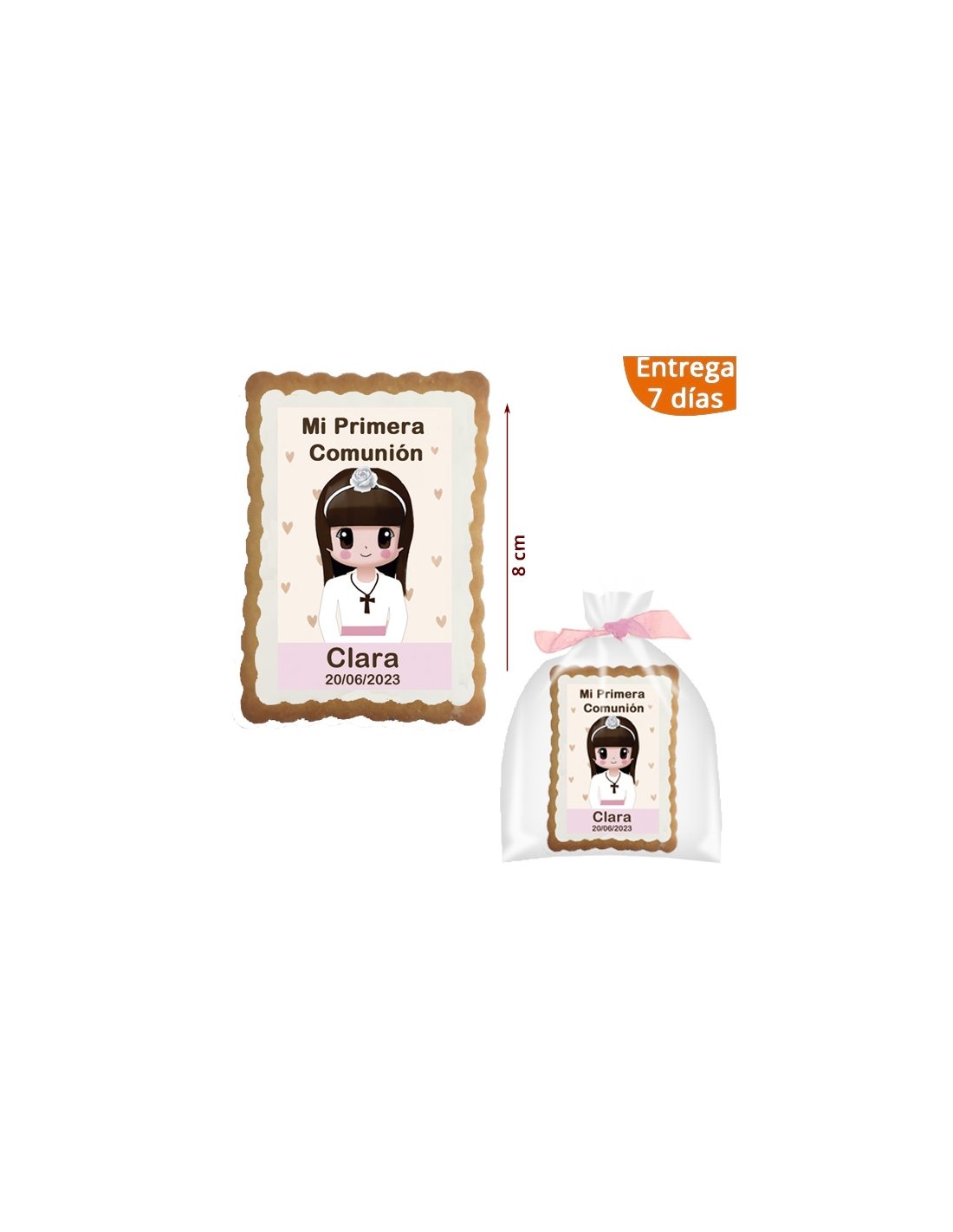 .GALLETA RECTANGULAR COMUNION DIBUJO NIÑA personalizada