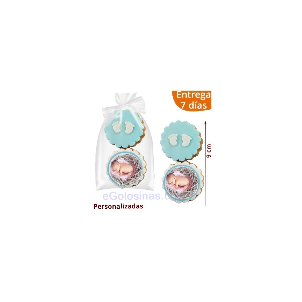 .2 GALLETAS para BAUTIZO con PIES BEBE y FOTO personalizadas