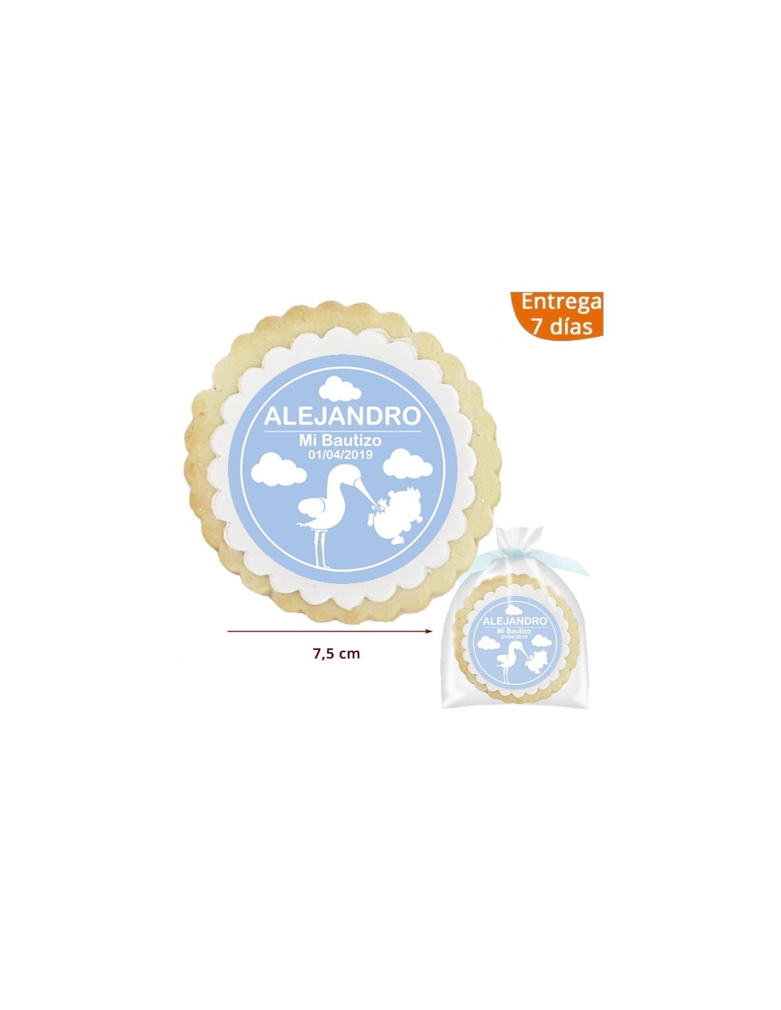 .Galletas detalle para Bautizo Niño de Cigueña y personalizada