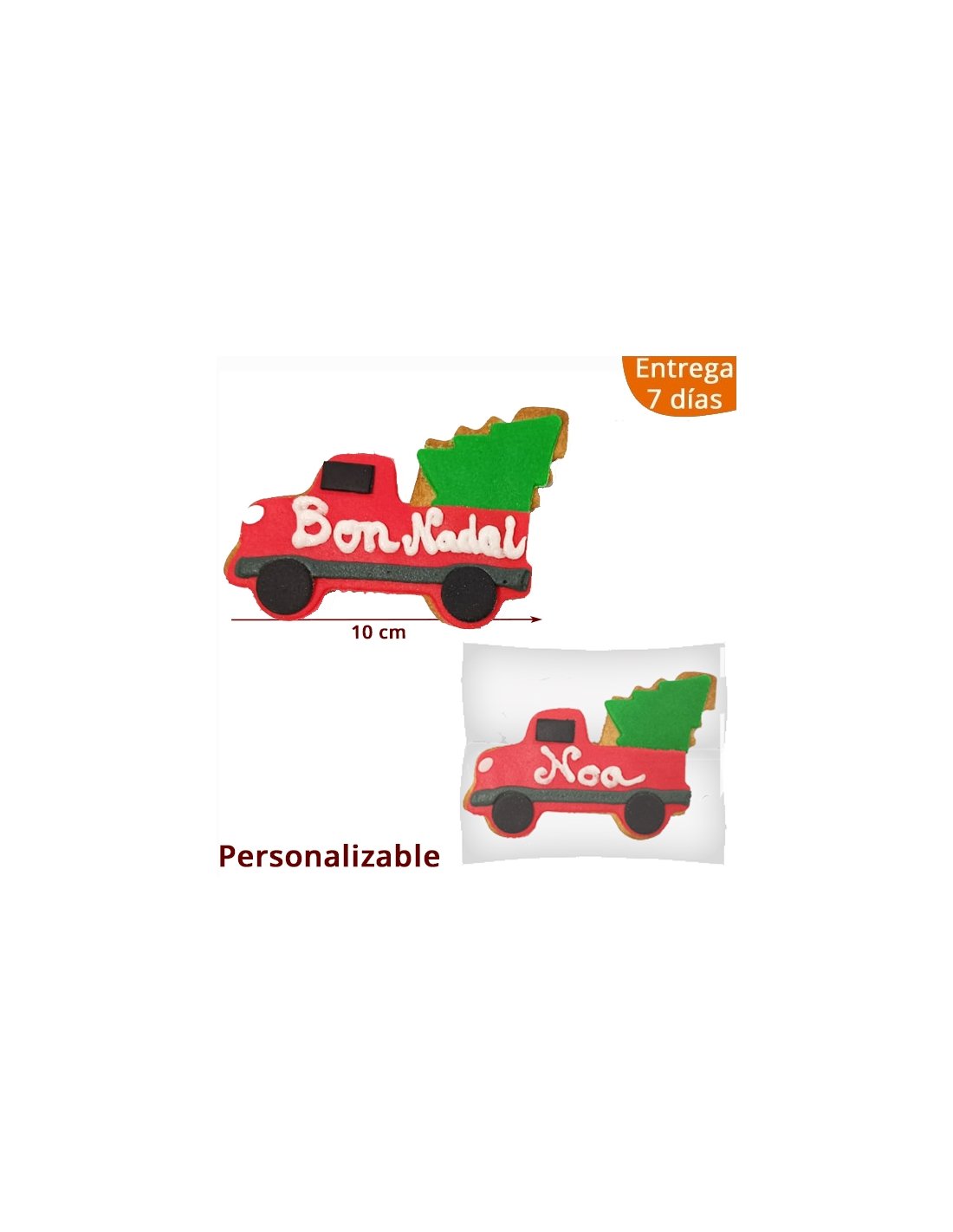 Galletas coche árbol navidad personalizable es una galleta artesana de mantequilla decorada con motivos navideños. Van en bolsa individual y puede personalizarse con una frase o palabra de 8 caracteres máximo que debes indicar más abajo.