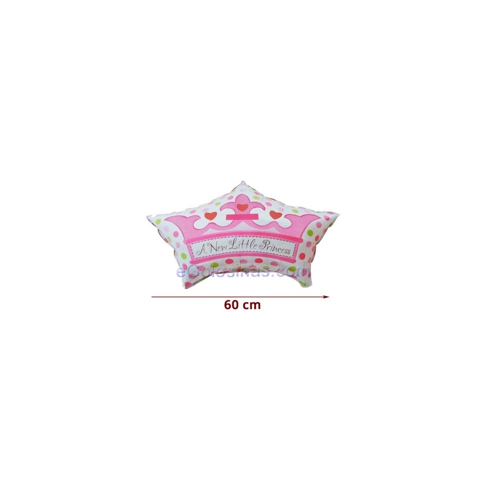 GLOBO con forma de Corona de Princesa de 60cm de ancho y 43 cm de alto aprox. Es perfecto para decorar un baby shower de niña o de niño o la fiesta de bienvenida del bebé o bien tu Fiesta de Cumpleaños de princesas