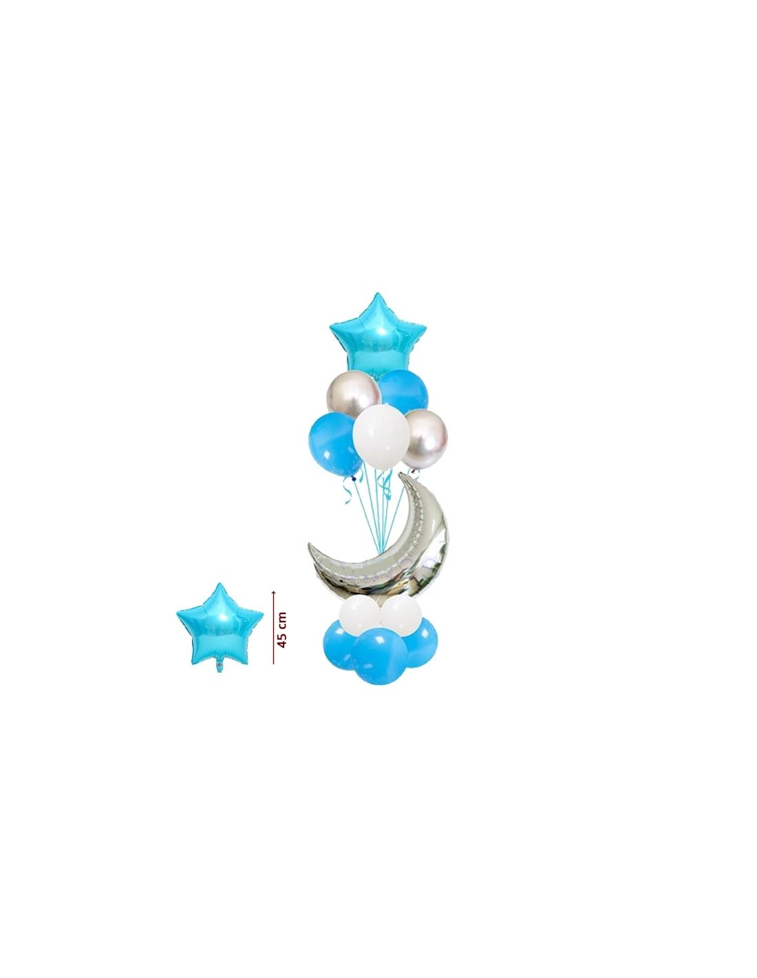 CONJUNTO 15 GLOBOS AZUL ESTRELLA CON LUNA