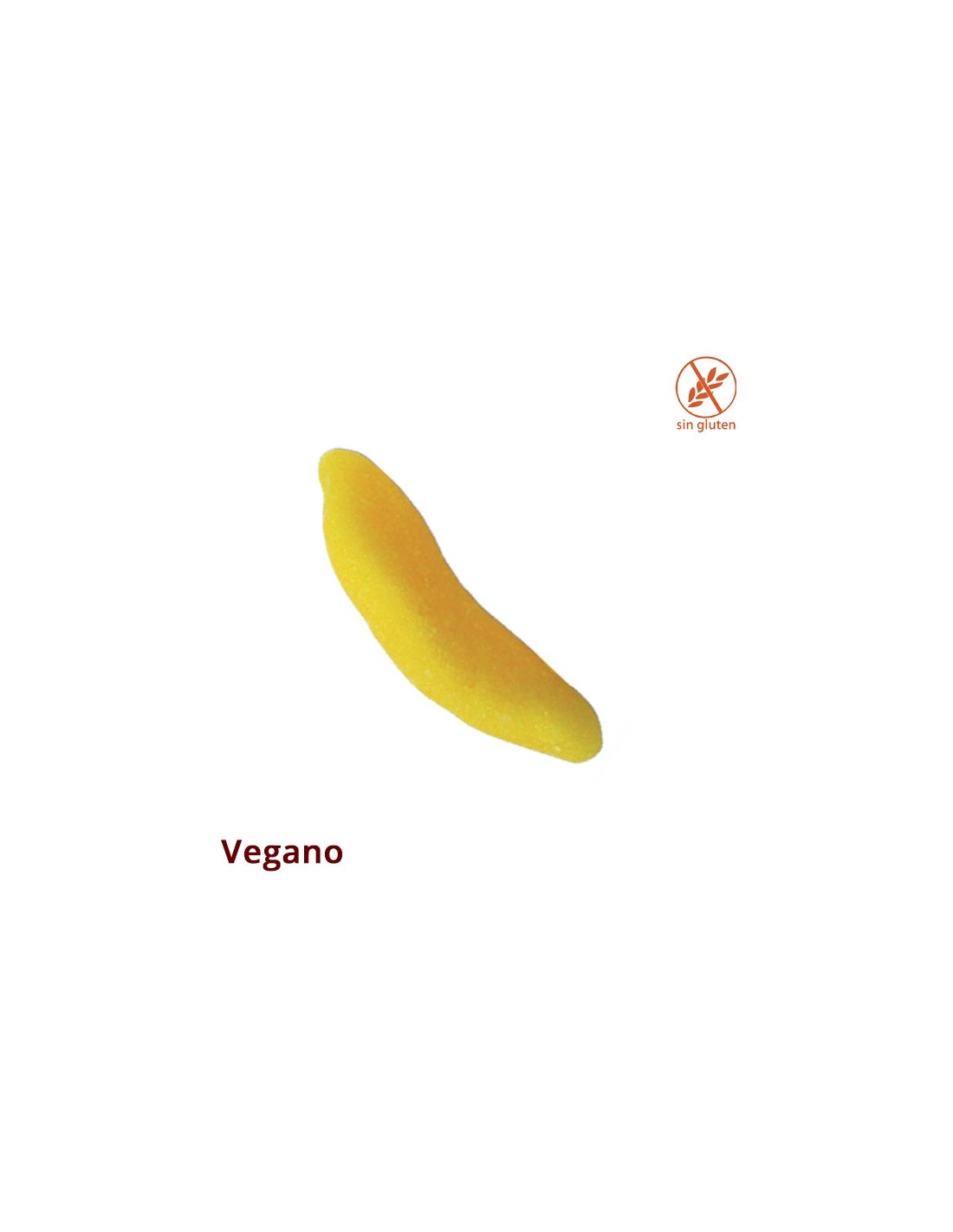 PLATANOS AZUCAR VEGANO 1kg DAMEL son caramelos de goma con forma y sabor a plátano envueltos de azúcar.