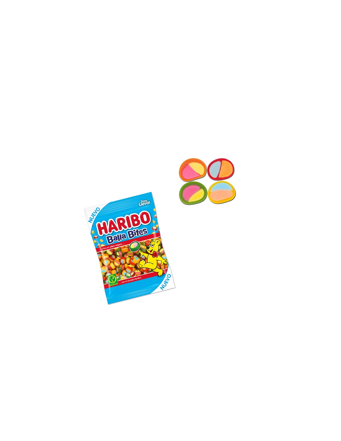 Regaliz Balla Bites 18 Bolsitas 100gr Haribo golosinas sabores frutales en cada bocado: naranja, fresa, limón, frutas del bosque, mora y manzana
