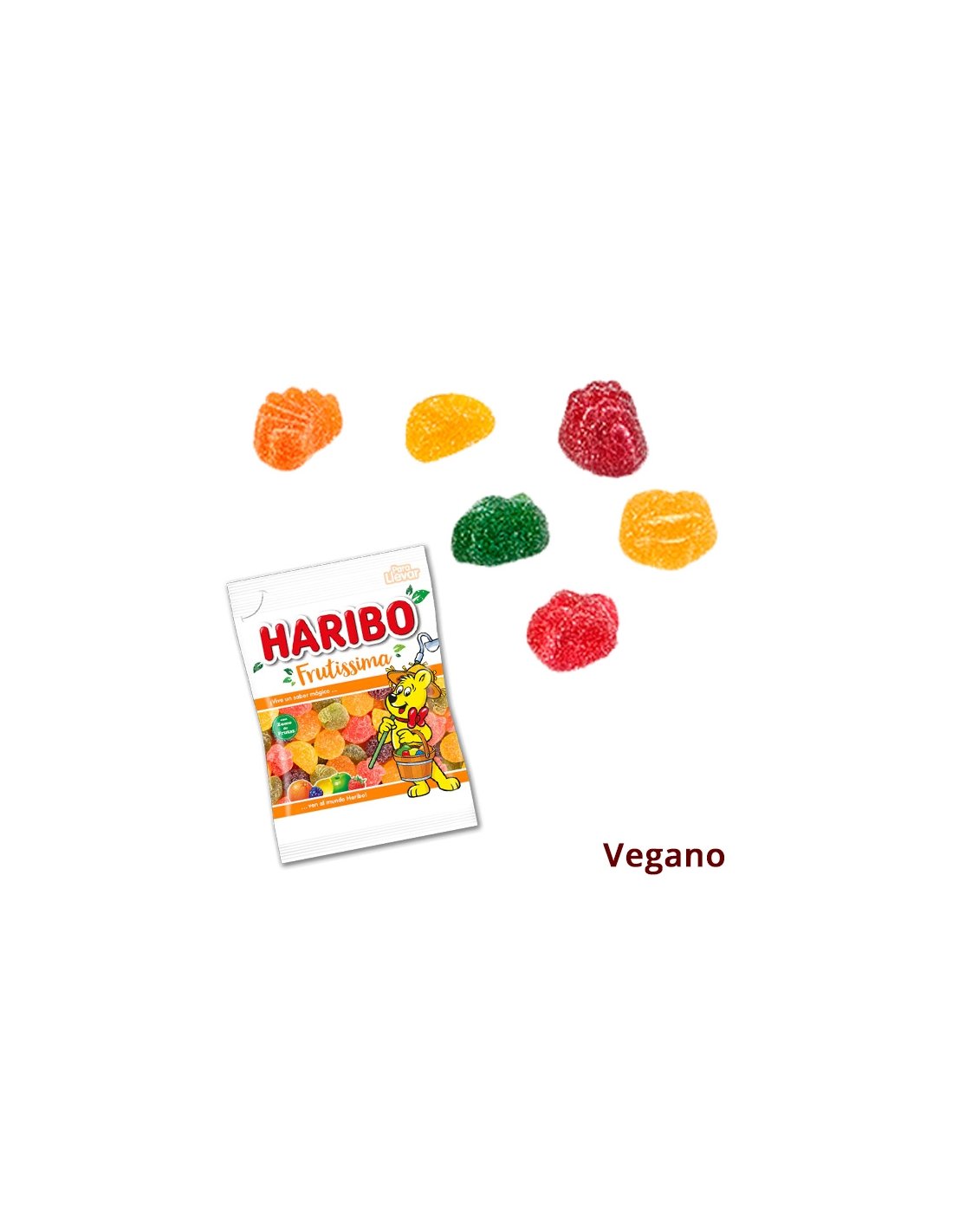FRUTISSIMA de HARIBO 18 Bolsitas de 90gr son gomas tiernas recubiertas de azúcar de sabor frutas: fresa, naranja, limon, manzana, mora y melocotón. en bolsitas de menos de 100gr. Se venden 18 bolsitas.