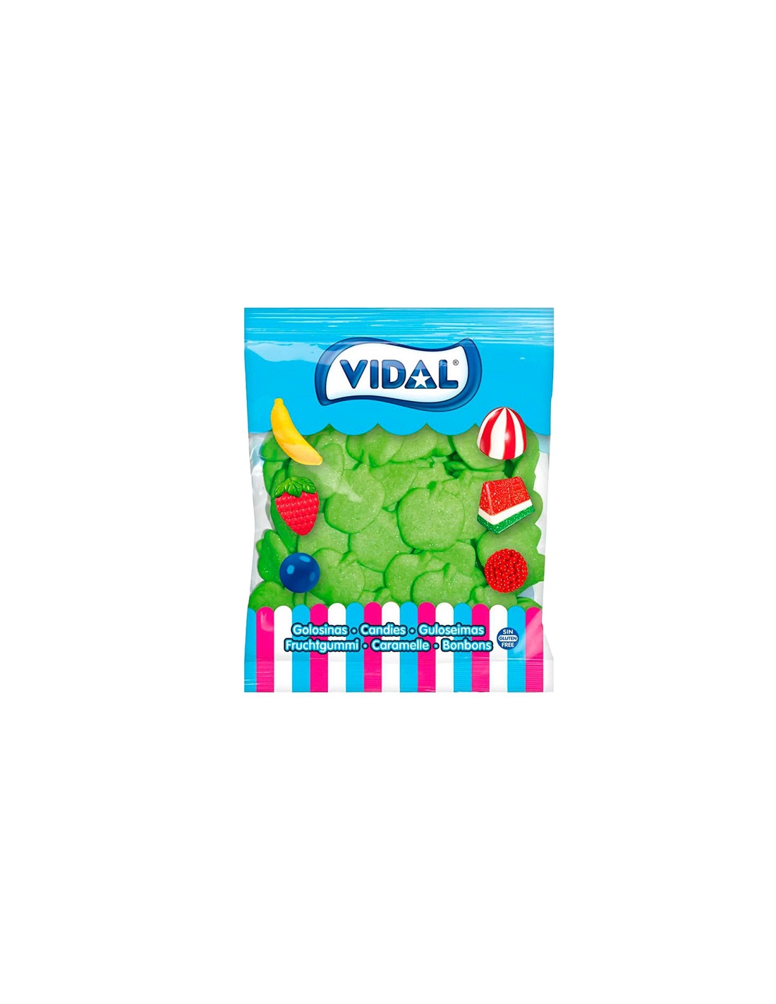 Las MANZANAS de VIDAL es un caramelo de goma azucarado sabor manzana. Se venden en bolsas de 1Kg. Sin Gluten