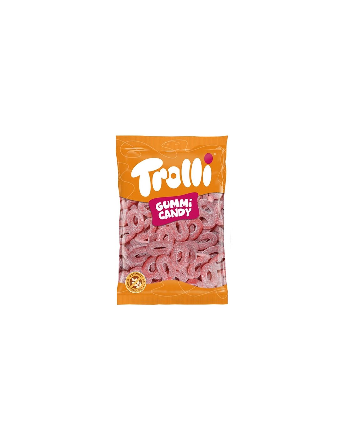 Aros de Fresa 1KG TROLLI son las clásicas gomitas con forma de aro . Se venden en bolsas de 1Kg y sin gluten.