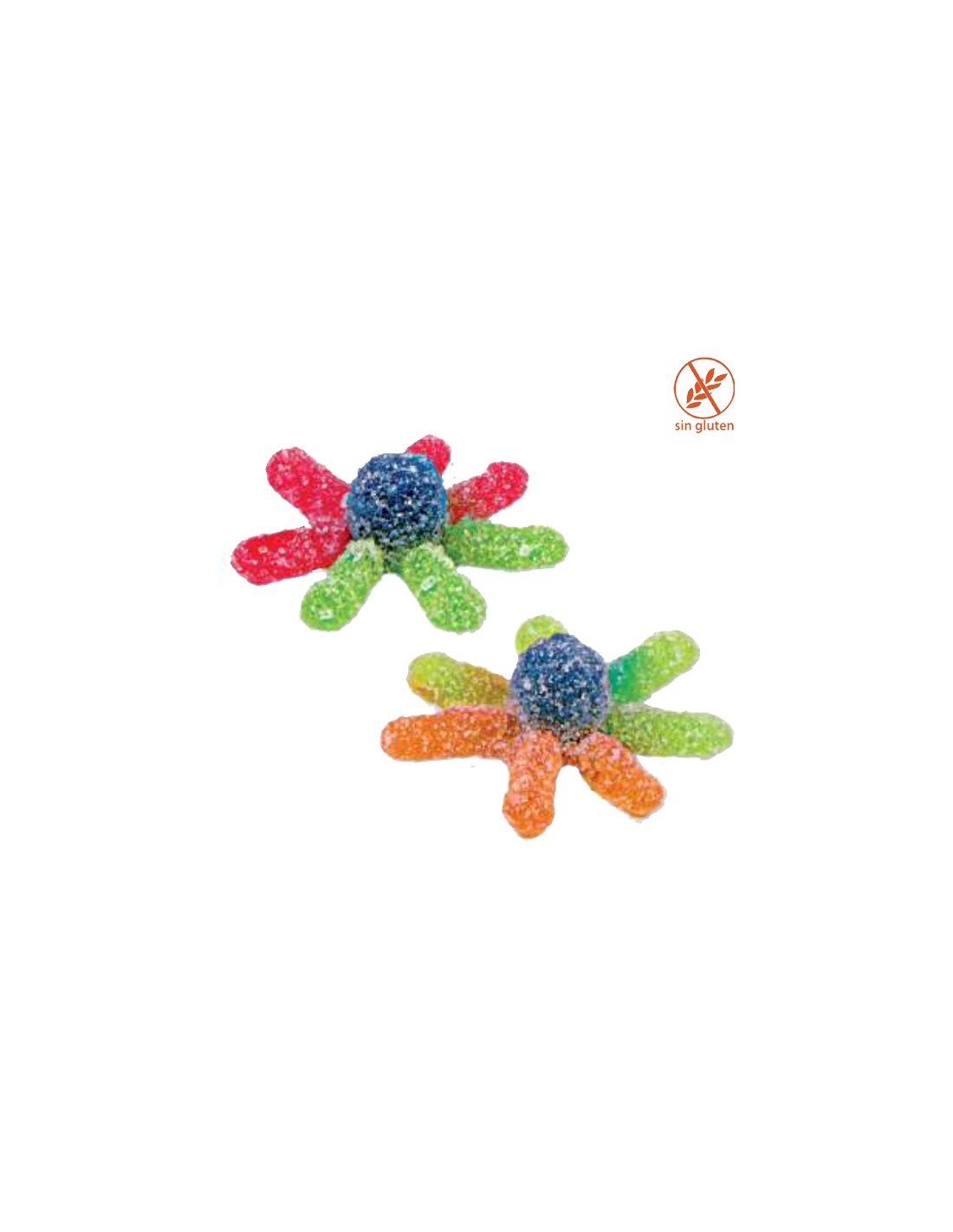 PULPOS PICA gominolas con forma de pulpo envueltos de pica. Se venden en bolsas de 250uds. Sin Gluten Chuches de goma envasados directos por el fabricante por lo que conservan perfectamente su calidad durante tiempo. Prepara Pasteles de Golosinas o Mesas Dulces con temática del mar. Combinas las golosinas de la misma categoría y las Nubes Azules o Cintas de Regaliz azul para simular el mar.