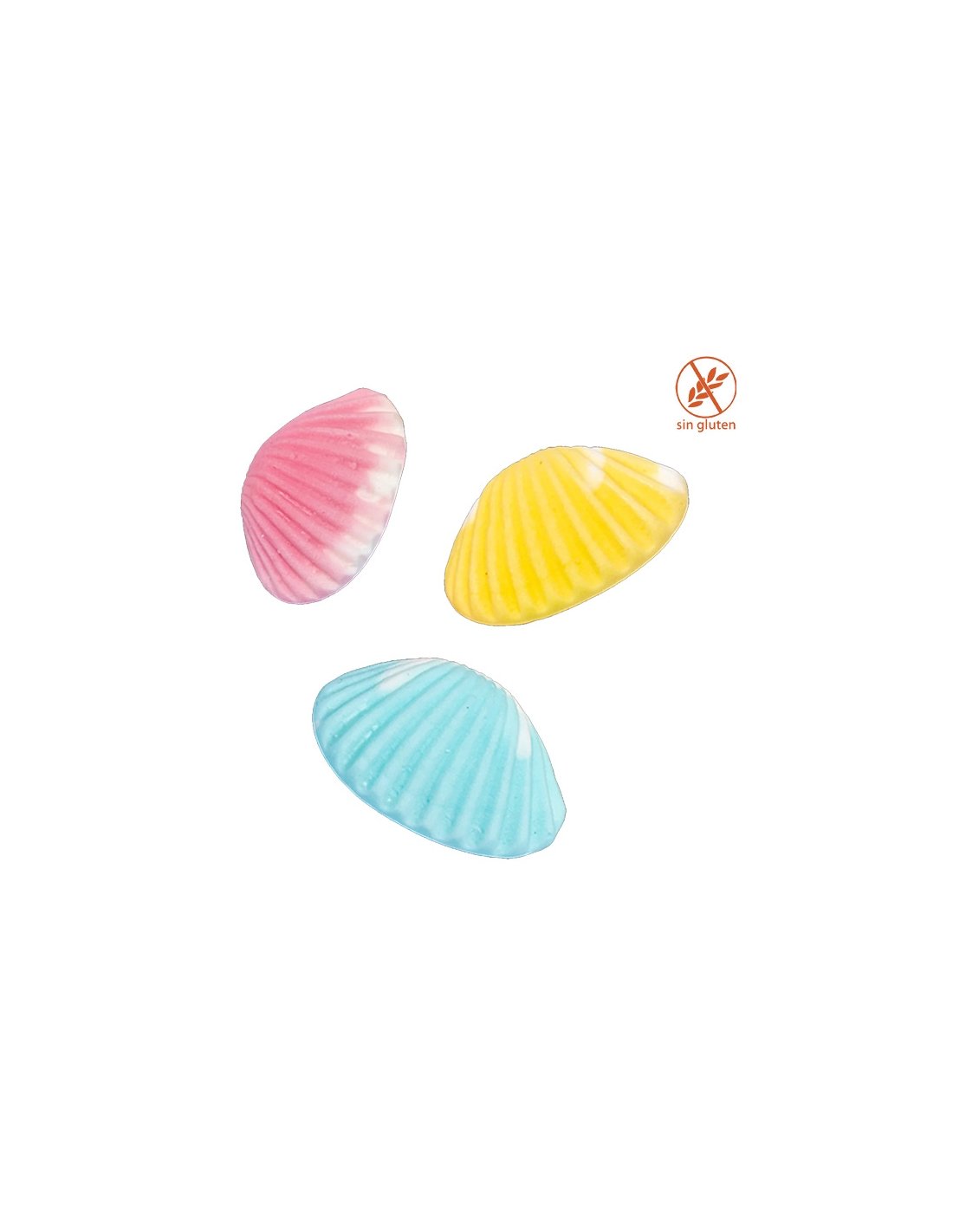 ALMEJAS son gominolas espuma seca con forma de almejas de colores. Se vende 250uds en bolsa. Sin GLuten