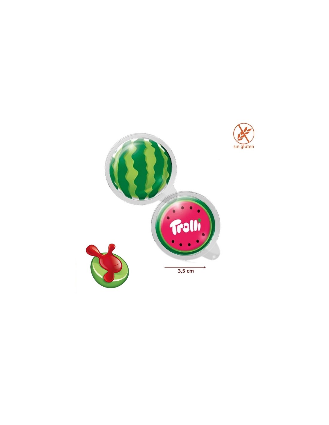 Sandías Rellenos chuches 85uds Trolli son deliciosos caramelos de goma o chuches en una cápsula decorada. Es la chuche más original que te sorprenderá su sabor y tacto auténtico.