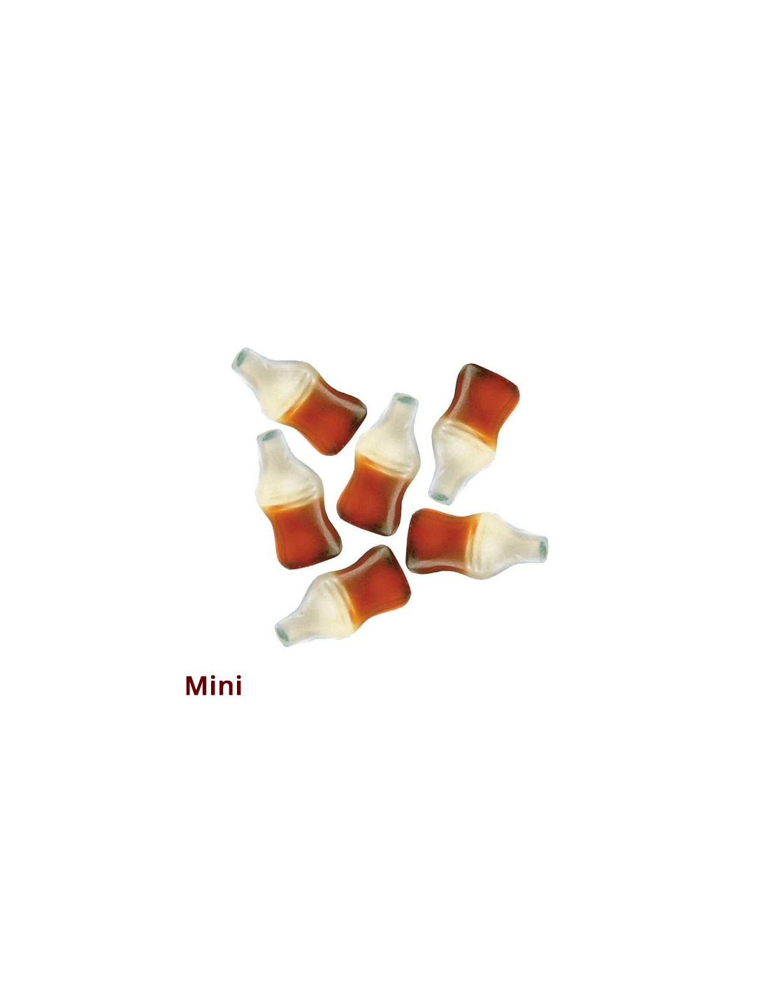MINI BOTELLA COLA son botellas de cola de goma de tamaño mini. Se venden en bolsas de 1Kg.