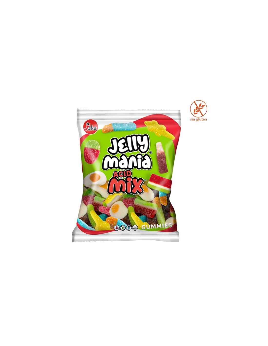 Jelly Mania Mix ácido chuches surtido pica 1kg Jake Golosinas es un surtido de chuches varias envueltas de pica como las tajadas sandía, cocodrilos, gusanos, botella cola, fresas salvajes y huevos de goma pica.