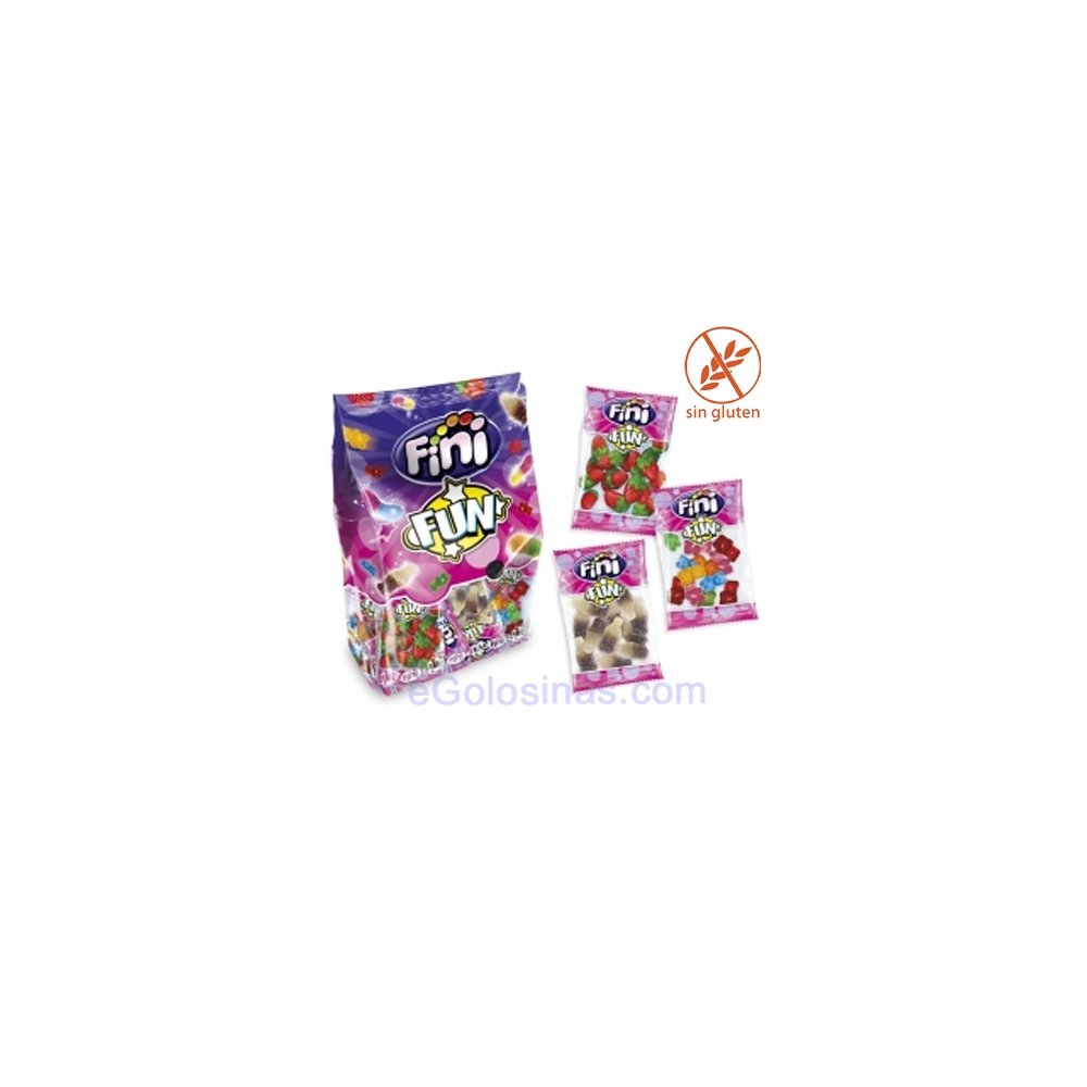 BOLSA FINI FUN 360gr es una bolsa surtida de 18 bolsitas de 20gr de goma. Cada bolsita es distinta.