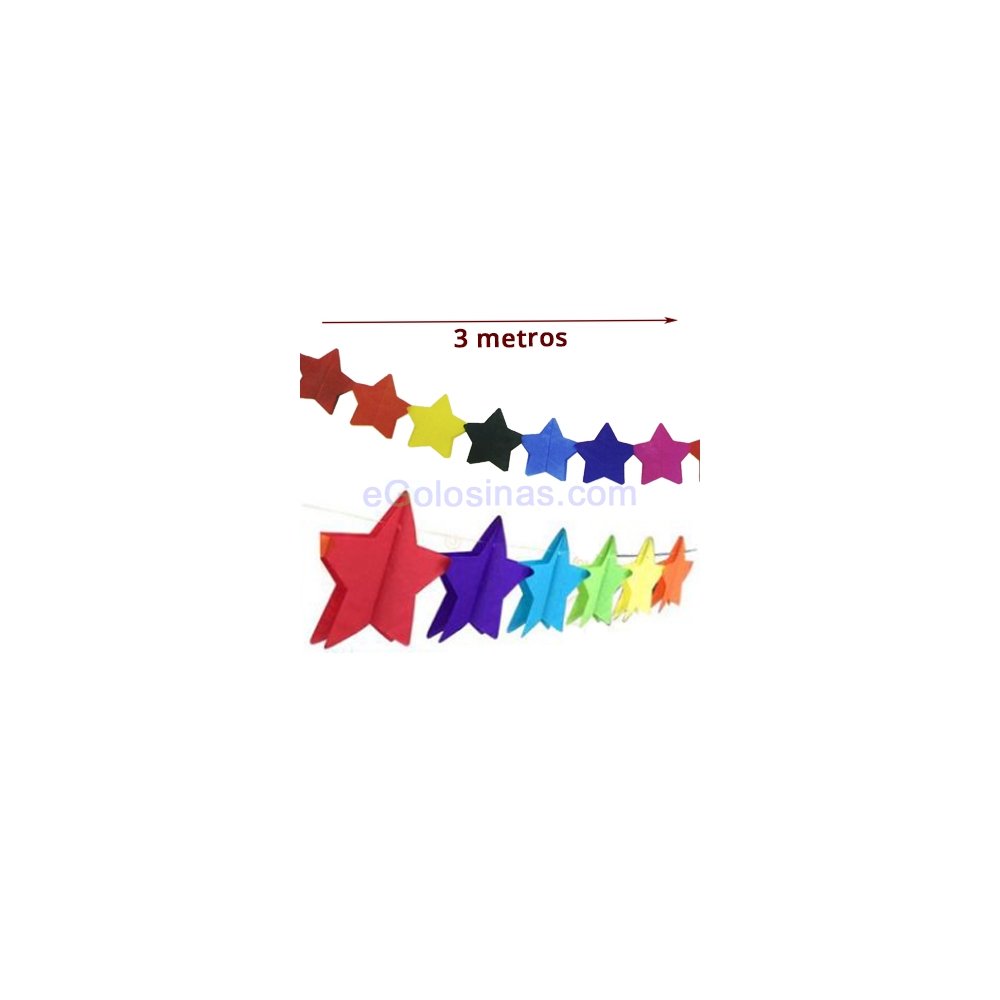 GUIRNALDA ESTRELLA COLORES SEDA 3mts es una guirnalda de seda clásica haciendo estrellas de colores que mide 3 metros y tiene un diámetro cada estrella de 17cm aprox.