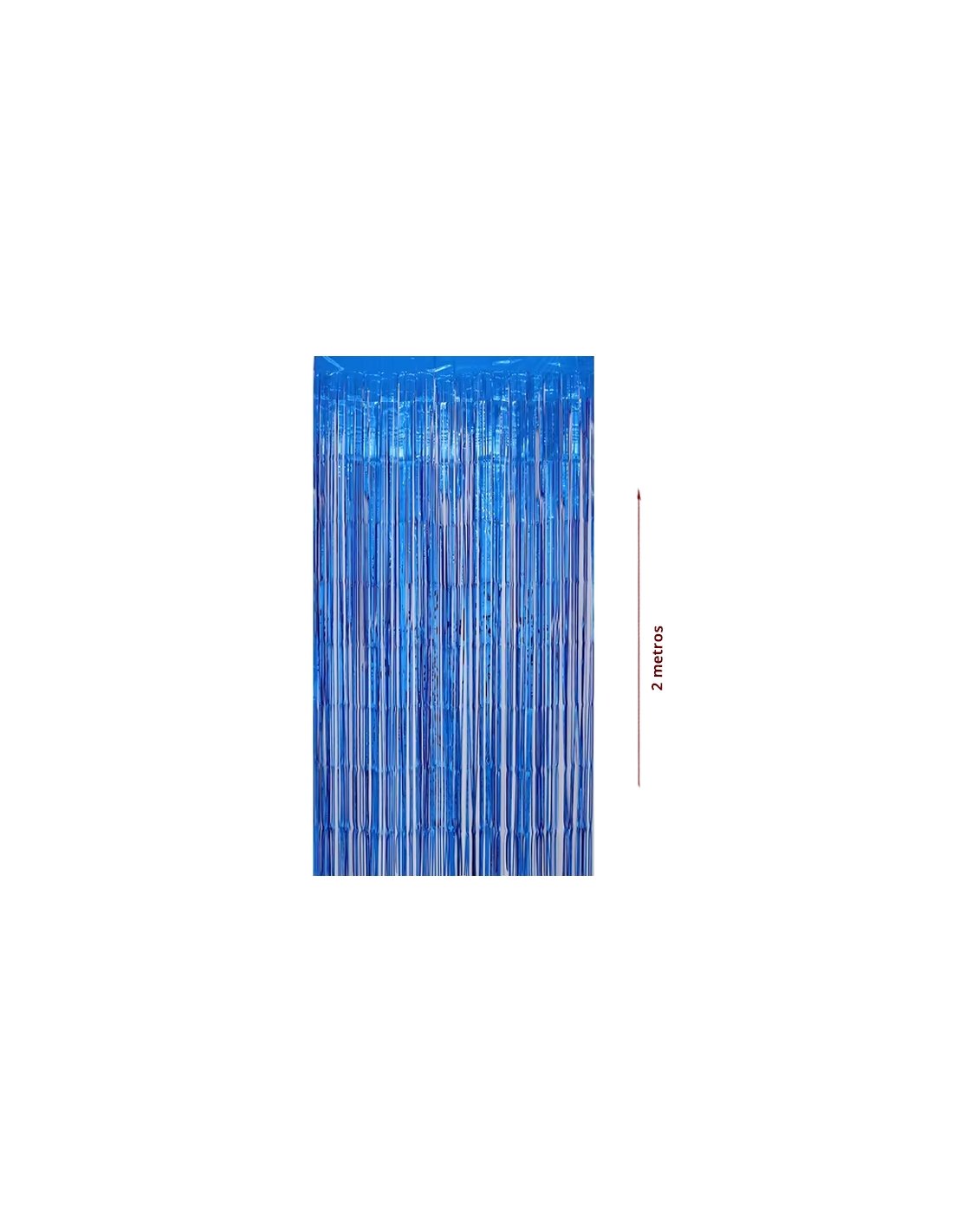 Cortina Fleco Metalizada Azul 1mt x 2mts para decorar Fiestas es una cortina de flecos AZUL metalizado ideal para poner como fondo para el Photocall de tus fiestas o en las puertas. Mide 1 metro de ancho por 2 metro de alto.