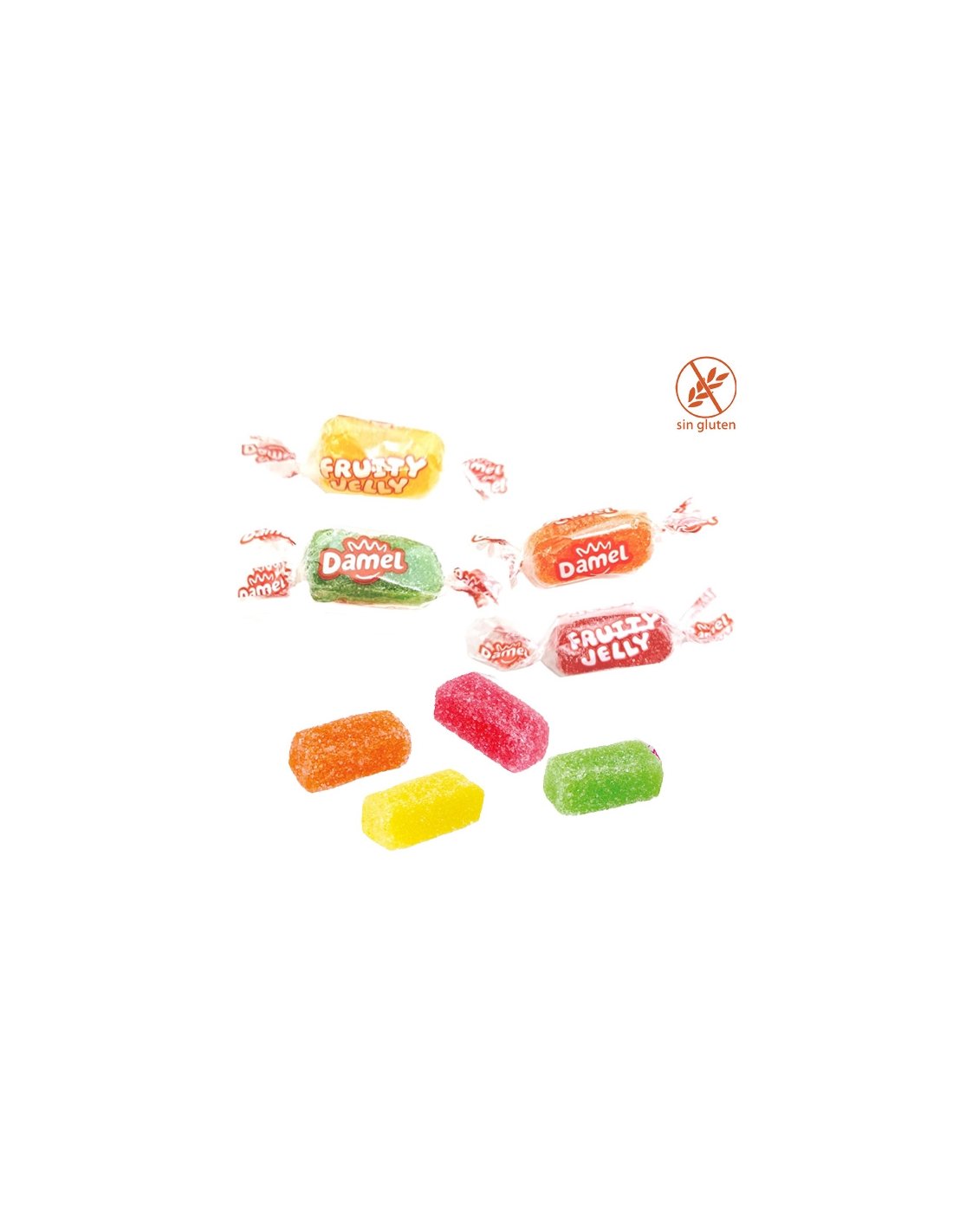 FRUITY JELLY kg 200uds aprox DAMEL es deliciosa goma de frutas con azúcar. Se venden envueltos individualmente en bolsas. Bolsas con chuches envueltas envasadas directas del fabricante que mantienen perfectamente su calidad durante tiempo. Golosinas ideales para realizar bolsas de chuches llenas o para poner en un bol en la recepción de una empresa