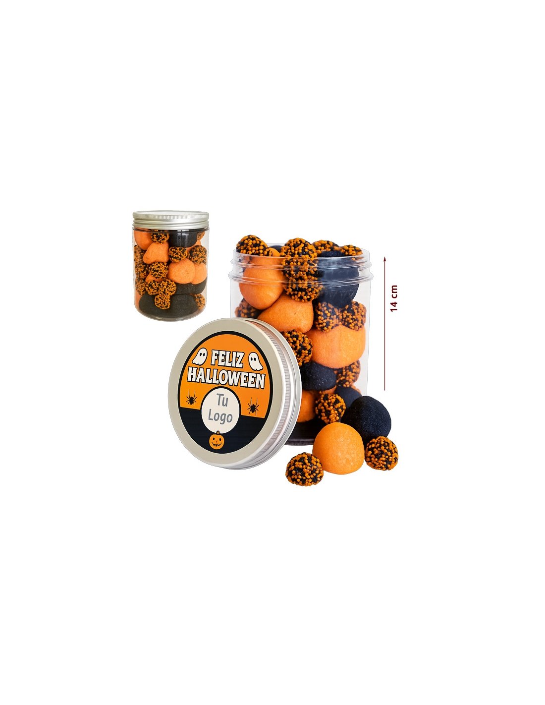 .Tarro Chuches Naranjas y Negras de Halloween 550Gr personalizable