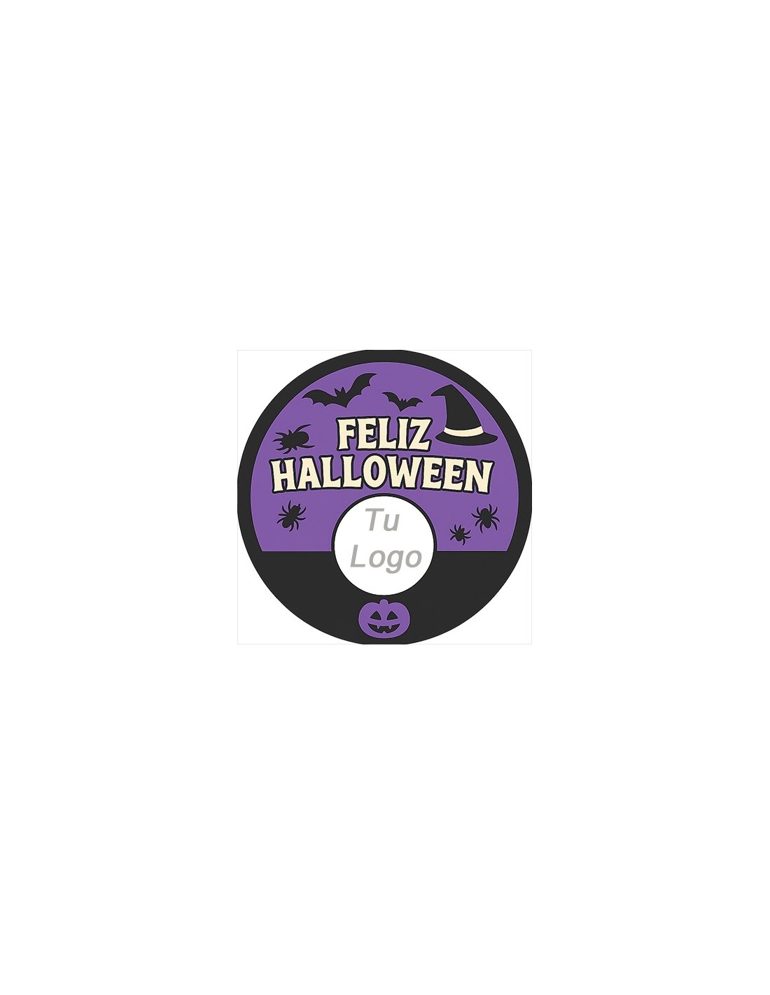 Lo personalizamos con una etiqueta redonda de 80mm en la tapa que te vendrá ya colocada. Esta etiqueta puede ser con la imagen de "Feliz Halloween" completa, con la frase y tu logo de tu empresa o que nos envíes tu diseño directamente. Nunca lo habías tenido tan fácil para personalizar un tarro.