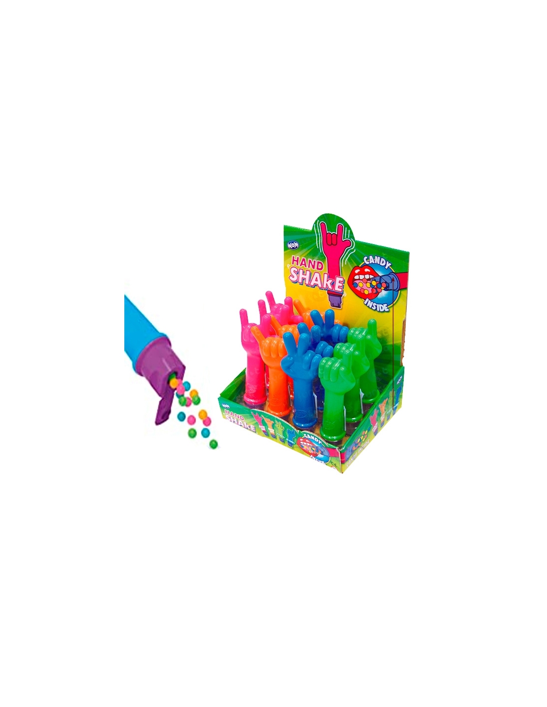 MANO HAND SHAKE con CARAMELOS 12uds son diferentes posturas de mano divertidas y juveniles rellenas de caramelos y con diferentes colores.