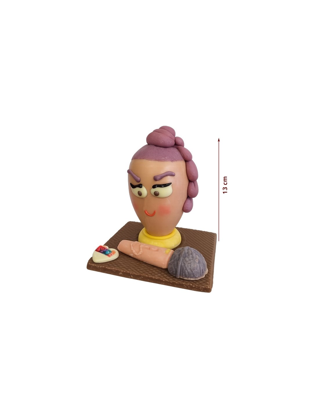 El producto va en una bolsa transparente para proteger el chocolate y la mona dentro de una caja bien protegida y con papel burbuja y porexpan burbuja.