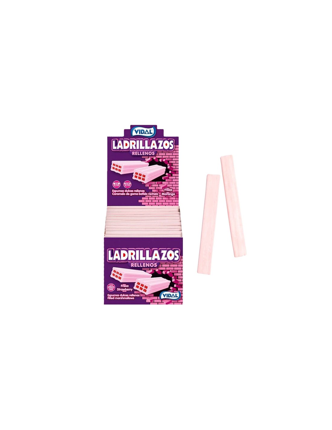Espumas dulces Ladrillazos Rellenos 75uds Vidal Golosinas son nubes cubiertas y rellenas de fresa. Se venden en tarros de 75uds.